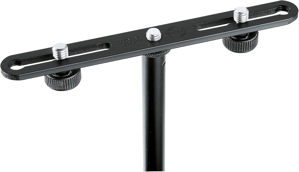 شريط ميكروفون K&M König & Meyer 23550.500.55 | وضع قابل للتعديل لاثنين من الميكروفونات أو أذرع التطويل | موصل حامل خيط 5/8 بوصة | اختيار احترافي صنع في ألمانيا باللون الأسود