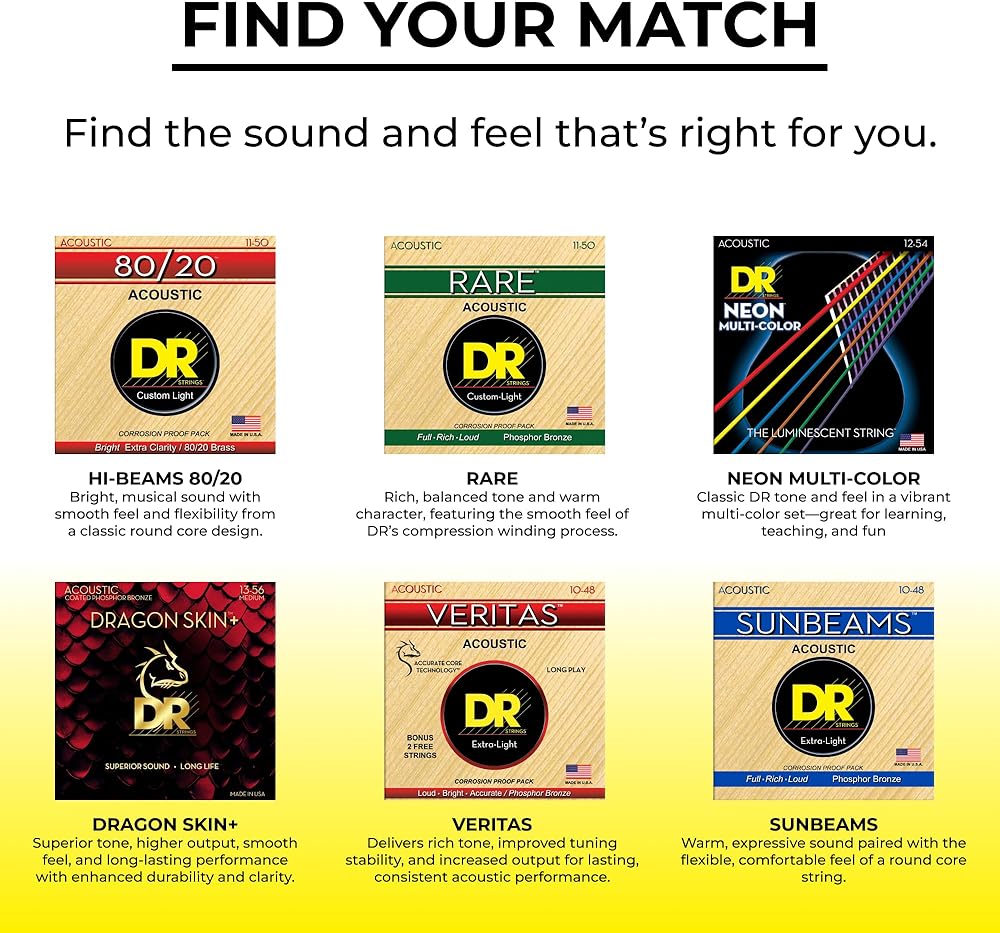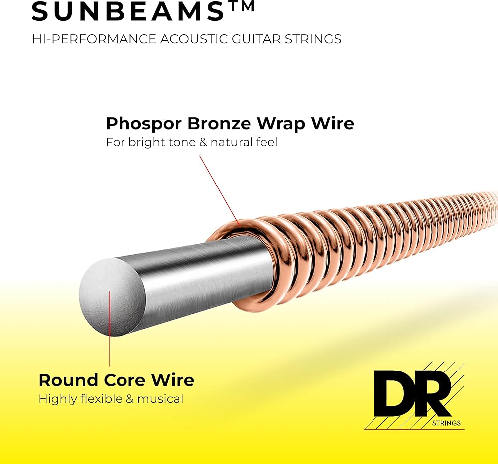 تستخدم أوتار الجيتار الصوتي SUNBEAM™ غلافًا من البرونز الفوسفوري على قلب دائري من الفولاذ عالي الكربون. يزيد استخدام القلب المستدير من المرونة وينتج استدامة طويلة تتلاشى ببطء وبشكل متساوٍ دون أي انخفاض مفاجئ. تتميز خيوط SUNBEAM™ البرونزية الفوسفورية بأنها مشرقة وغنية من الناحية الموسيقية.