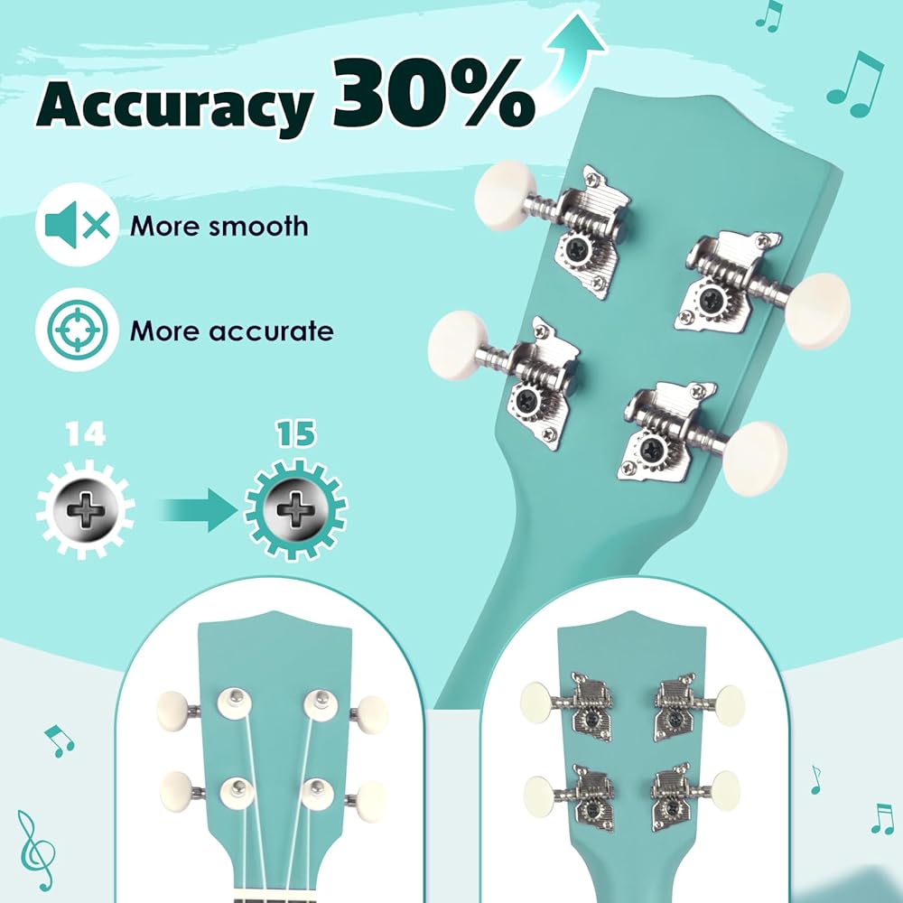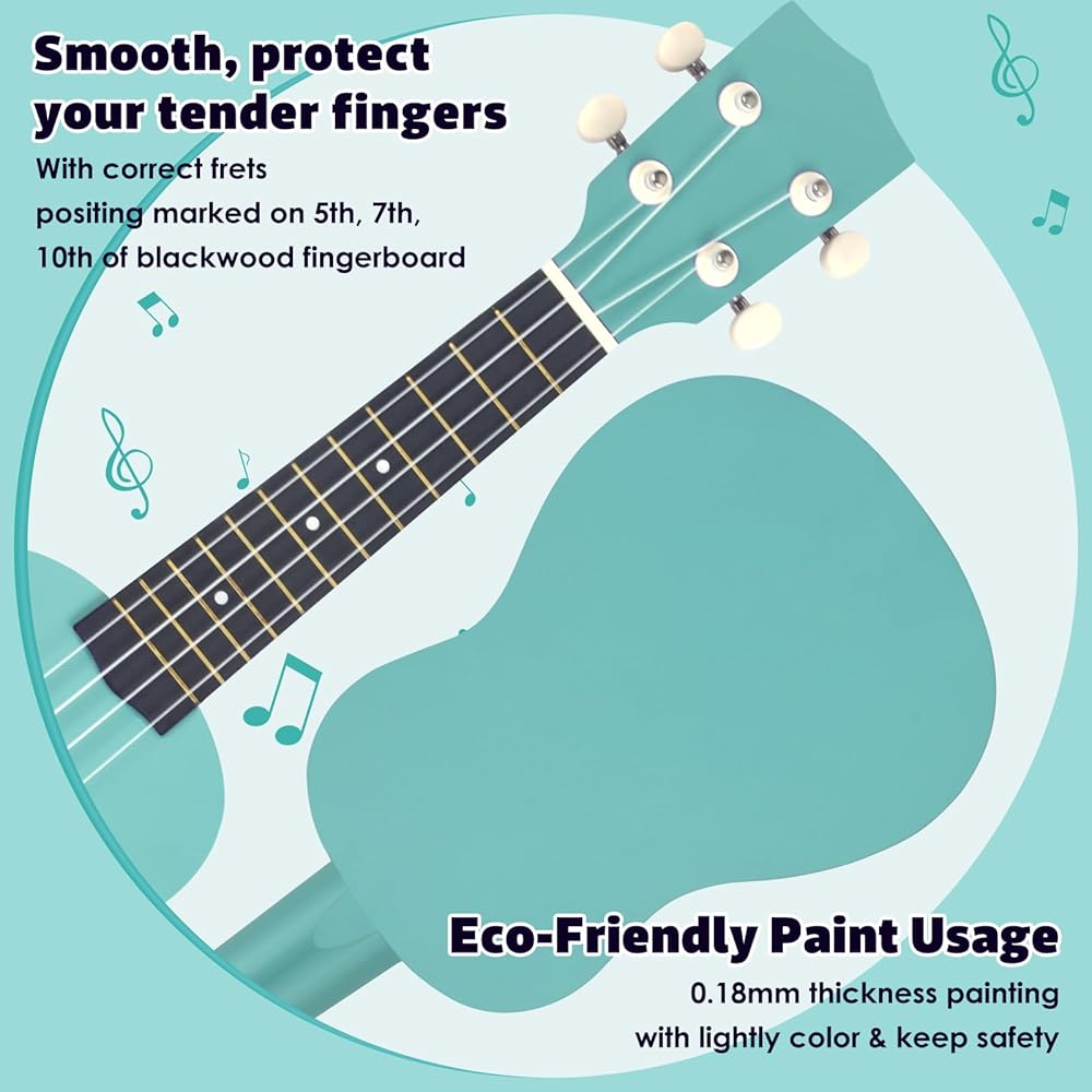 • ✨ 【صوت أكثر إشراقًا وثراءً 】جسم خشب الزيزفون الحقيقي مقاس 21 بوصة مع لمسة نهائية شديدة اللمعان ونقطة صوت مدمجة عالية الدقة توفر نغمة وأصوات واضحة ونقية ولحن سواء كنت منفردًا أو تلعب مع الأصدقاء أو تغني مع الأصدقاء.
