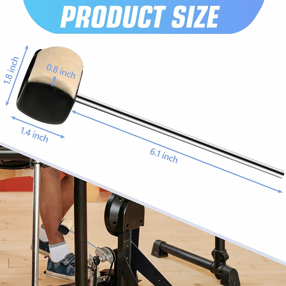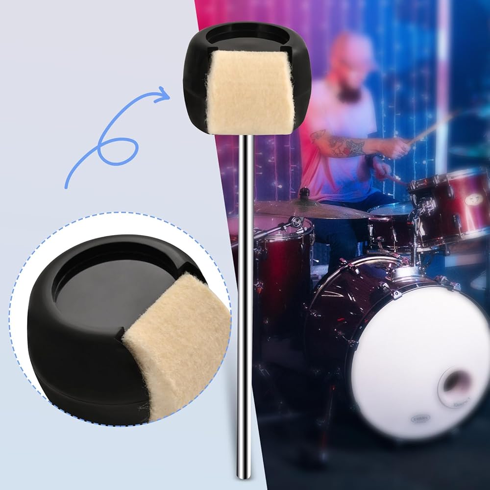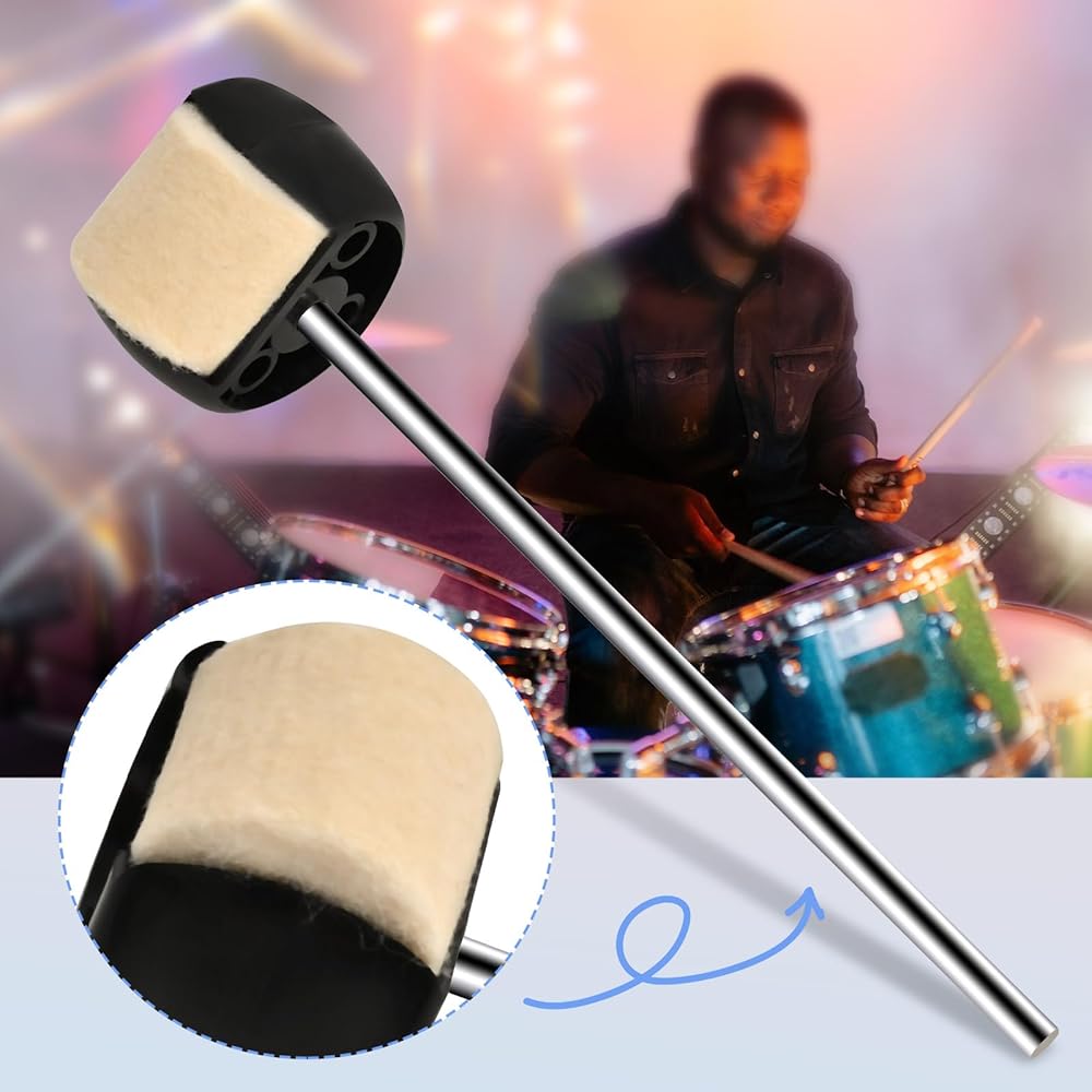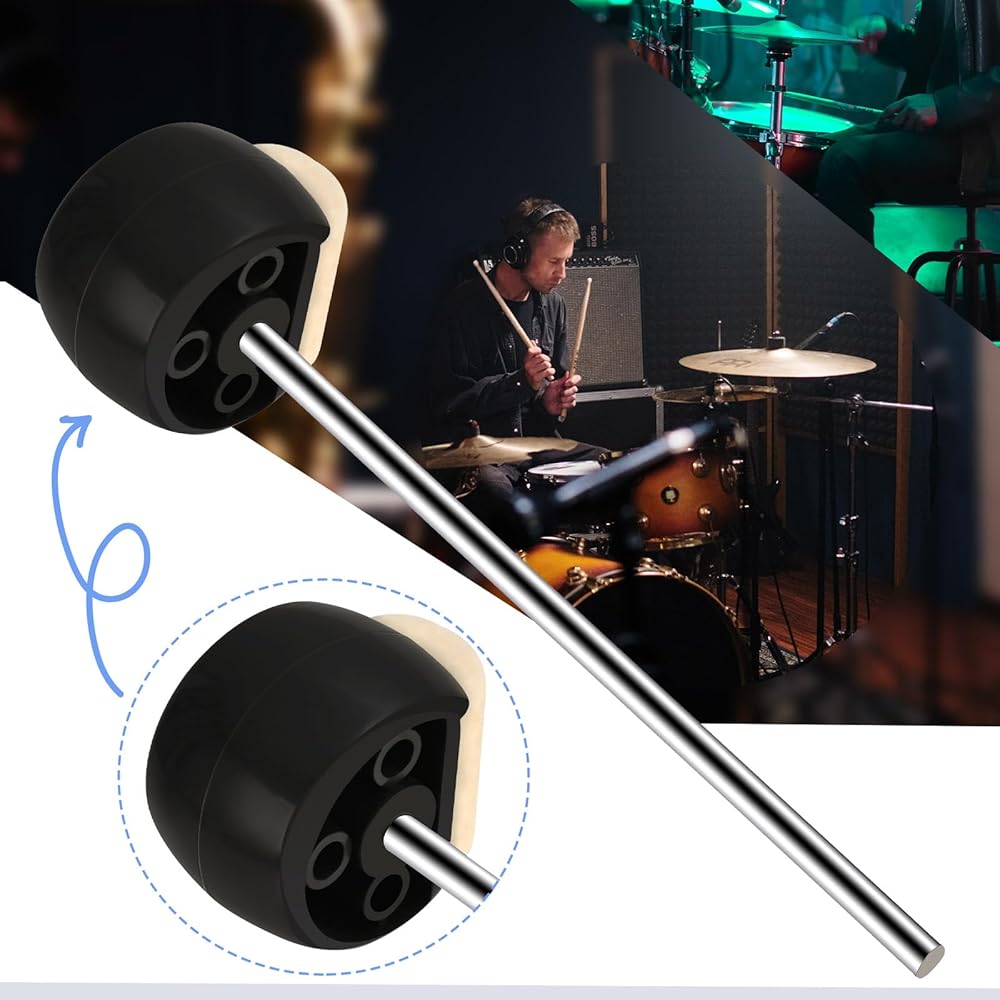 خافق طبلة الجهير من Tipatyard، مطرقة بدواسة طبلة الجهير مع رؤوس خافق من اللباد والبلاستيك وعمود من الفولاذ المقاوم للصدأ، تناسب معظم دواسات طبلة الجهير