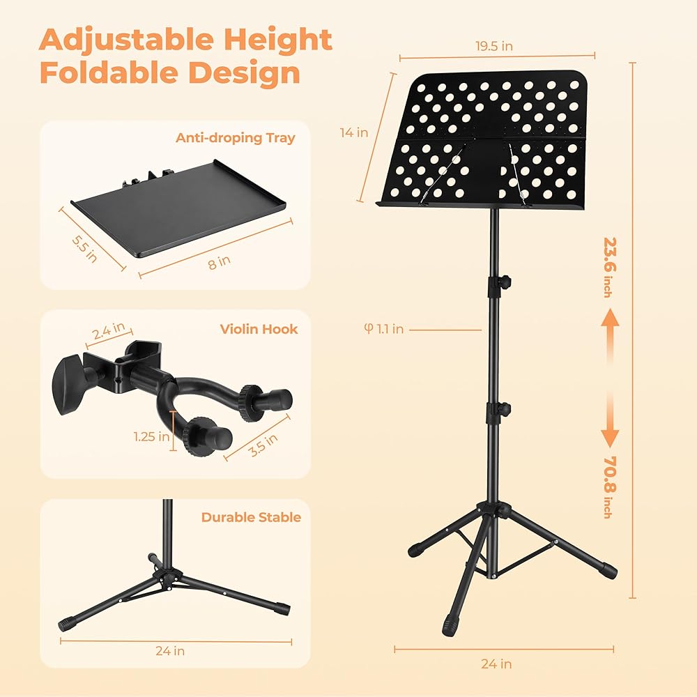 ✔ [Travel Friendly] - The lightweight, compact and folding music stand comes with a waterproof carrying bag so you can fold it up into the bag for storing or transporting.