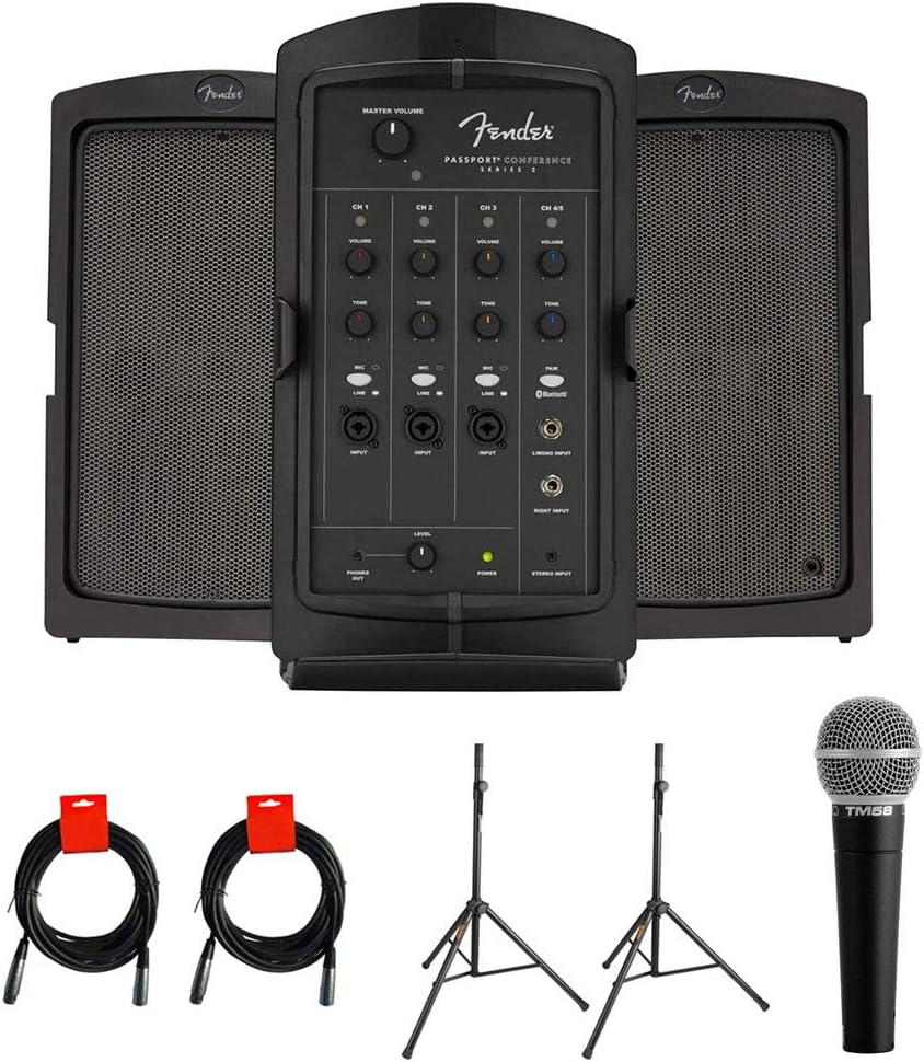 تم تصميم Fender Passport Event Series 2 Bundle للتعليم والأحداث الرياضية ودور العبادة والاجتماعات والندوات والعروض الموسيقية والحفلات والنوادي الصغيرة والمقاهي، وهو عبارة عن نظام PA محمول قائم بذاته يوفر كل ما يلزم لتوصيل التضخيم إلى جمهور متوسط الحجم. رائعة لتضخيم الأصوات والأدوات والموسيقى الخلفية في أي مكان وفي أي وقت. تشتمل جميع قنوات الإدخال على عناصر تحكم في مستوى الصوت والصوت الثلاثي والباس والصدى. تتميز القنوات 1-4 بمدخلات ميكروفون/خط XLR-1/4 بوصة، بينما تستخدم القناة 5 خطًا واحدًا 1/4 بوصة / مدخل Hi-Z يستوعب أداة، مثل الجيتار. توفر القنوات 6/7 (L/Mono & R) مدخلين مقاس 1/4 بوصة بالإضافة إلى موصل استريو 3.5 ملم وجهاز استقبال بلوتوث مدمج لبث الصوت لاسلكيًا من الهاتف أو الكمبيوتر اللوحي.