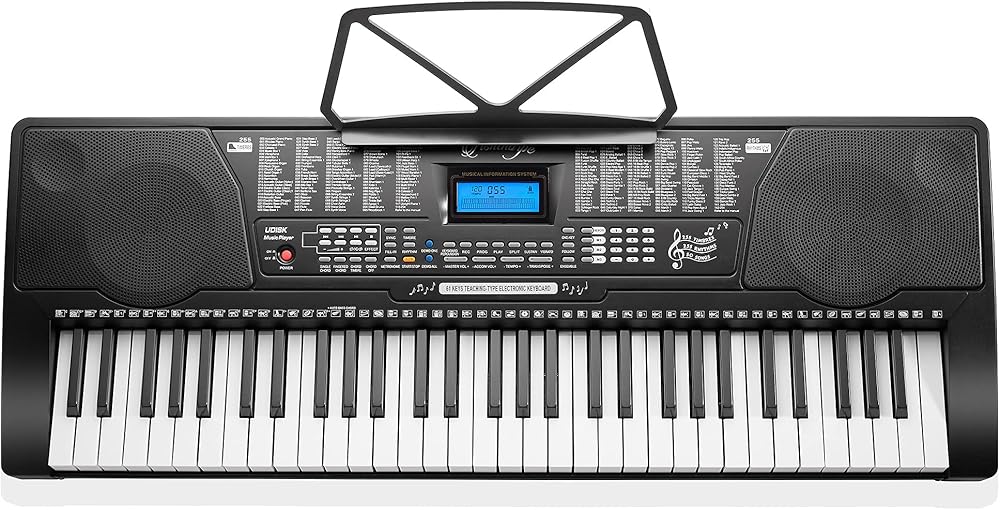 • لوحة مفاتيح رقمية ذات 61 مفتاحًا مع مفاتيح بالحجم الكامل: مع 61 مفتاح بيانو بالحجم الكامل، تعد لوحة المفاتيح هذه خيارًا ممتازًا للاعبين على جميع المستويات. تتيح المفاتيح كاملة الحجم للاعبين الشعور التقليدي بالعزف على البيانو. للمبتدئين الذين بدأوا للتو في استكشاف لوحة المفاتيح الإلكترونية، واللاعبين المتوسطين الذين يبحثون عن جودة رائعة وشاملة، أو عازفي لوحة المفاتيح المتقدمين الذين يستمتعون بمتعة هذه الآلة متعددة الاستخدامات، تم تصميم هذه الآلة لإرضاء الجميع!