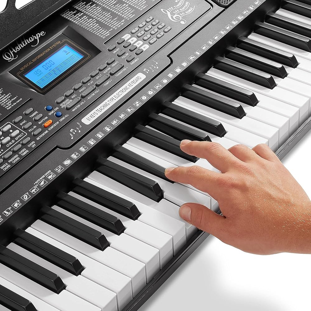 Ashthorpe 61-Key Digital Electronic Keyboard Piano مع مفاتيح كاملة الحجم للمبتدئين، تتضمن سماعات الرأس والميكروفون وملصقات الكلمات الرئيسية