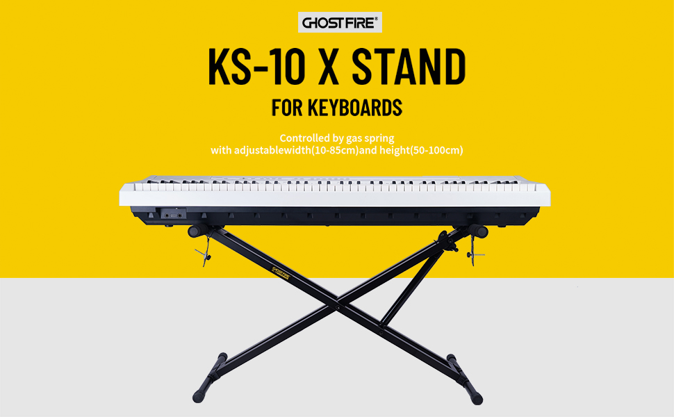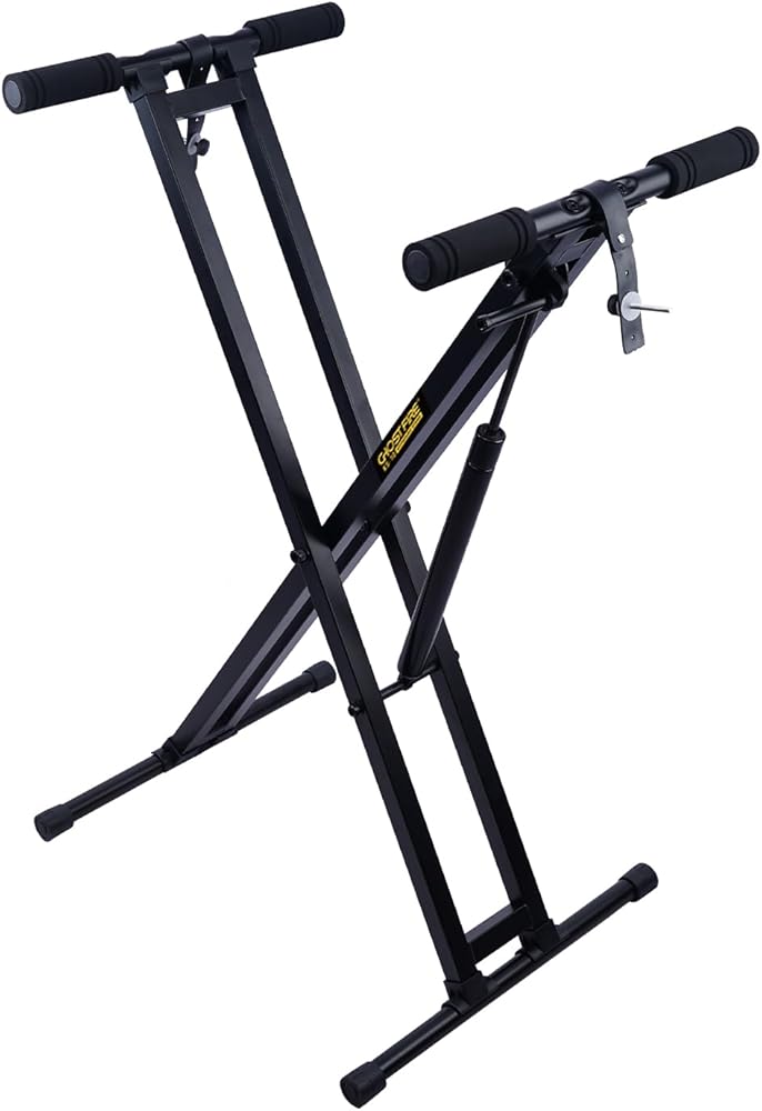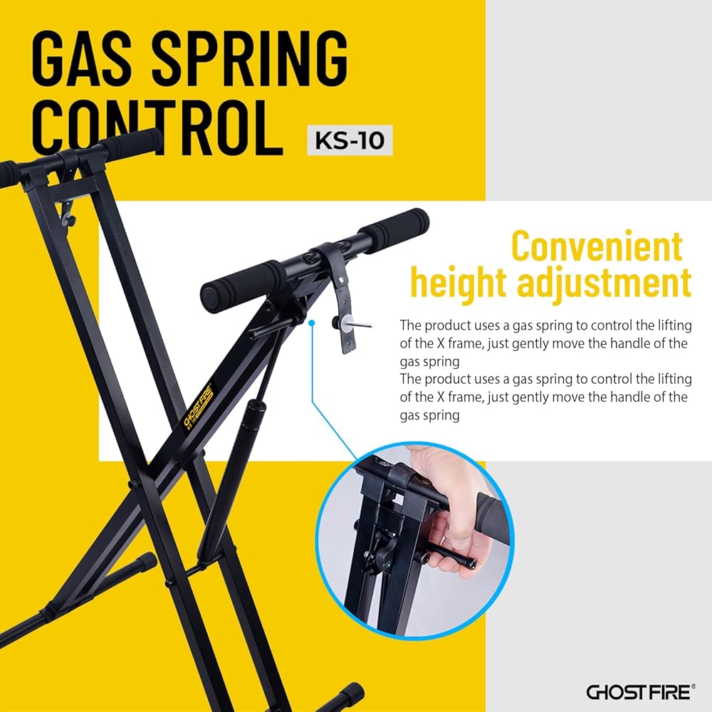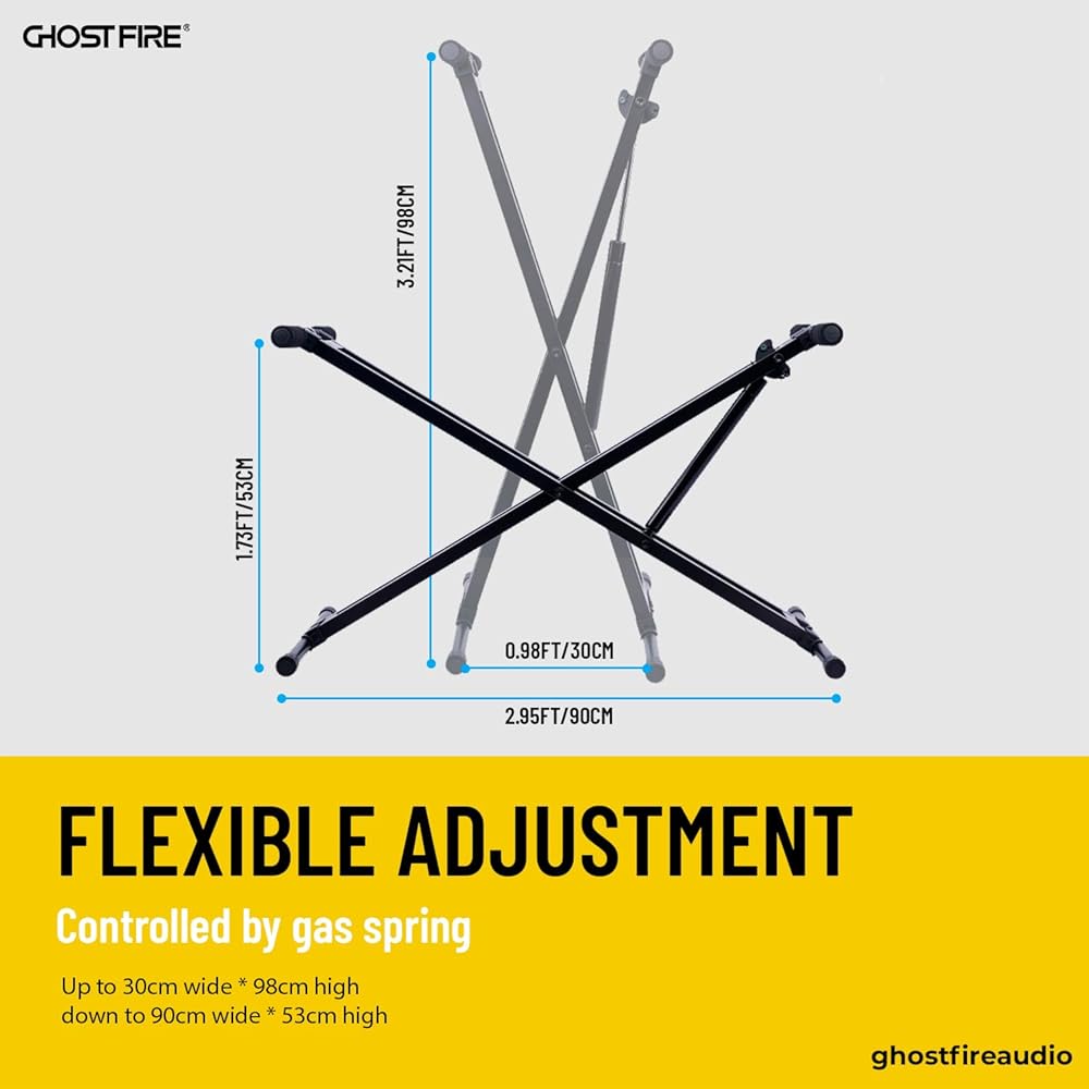 GHOSTFIRE لوحة مفاتيح هيدروليكية قابلة للتعديل وحامل بيانو عالي التحمل مزدوج X مُجمَّع مسبقًا بزر واحد مع أشرطة قفل، KS-10 حامل X محمول لبيانو كيبورد الكهربائي