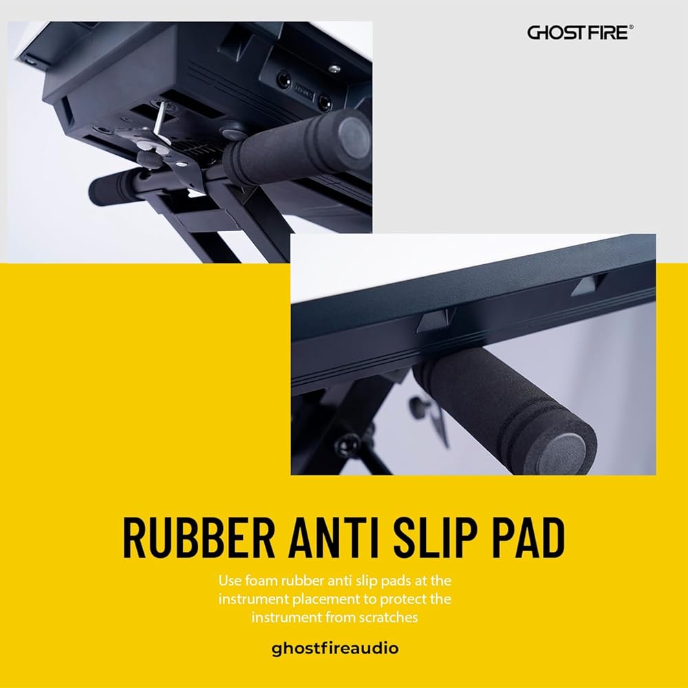 قابل للطي والحمل على شكل X: تم تصميم حامل لوحة المفاتيح GHOSTFIRE X-Shape ليكون قابلاً للطي والحمل، مما يجعل من السهل حمله وتخزينه. سواء كنت تتدرب في المنزل أو تؤدي على المسرح، فإن هذا الحامل هو رفيقك المثالي.