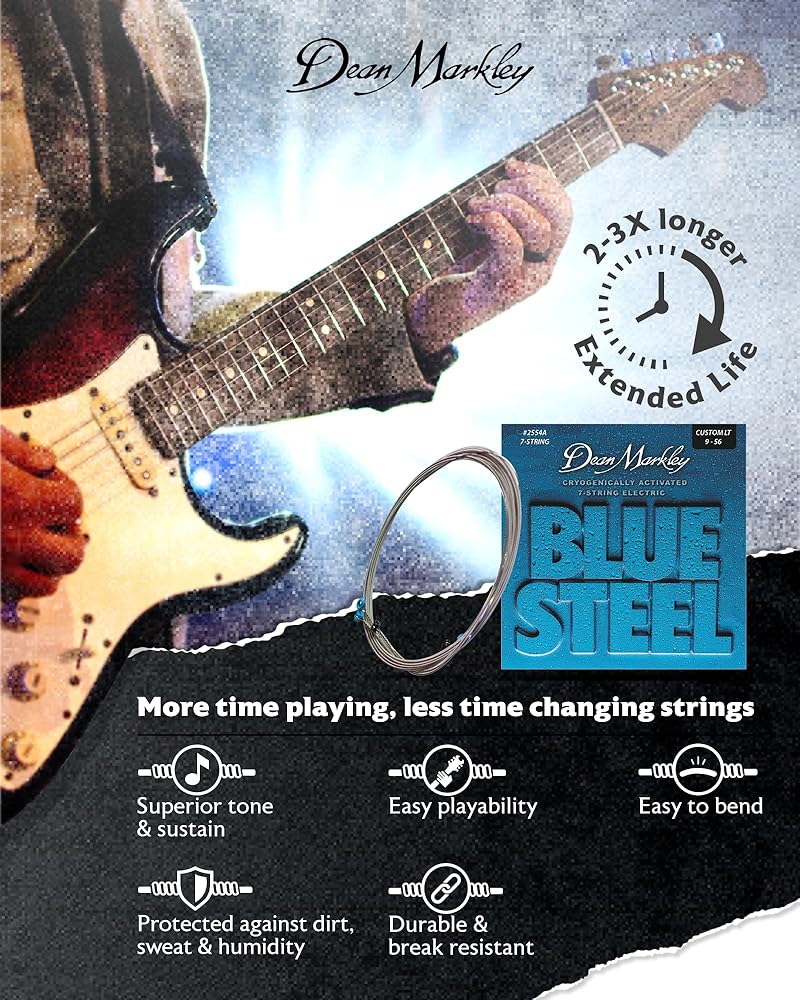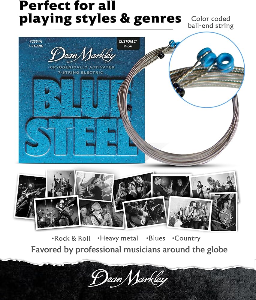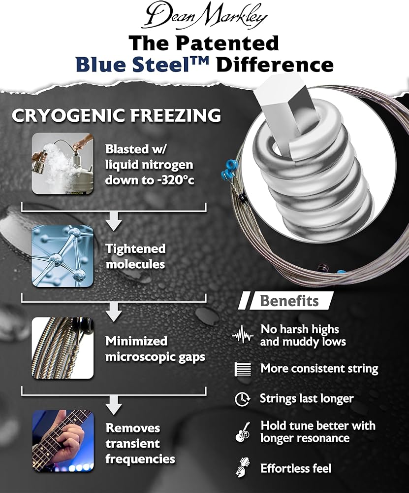 Blue Steel™ are the world's first and finest Cryogenic- processed strings. That's right, this is the one everyone's been talking about. Blue Steel™ strings are a total breakthrough in string technology. Starting with the very finest quality materials, Blue Steel™ strings are frozen to minus 320 degrees Fahrenheit, held there for an exact period of time and then slowly and carefully brought back to their original temperature. This unique Cryogenic treatment realigns the molecular structure of the string, giving Blue Steel more highs and lows, a longer life and greater ability to stay in tune. It's simply amazing what a little -320º liquid nitrogen can do to a guitar string. Put on a set and see what all the noise is about. Twice the tone and twice the life