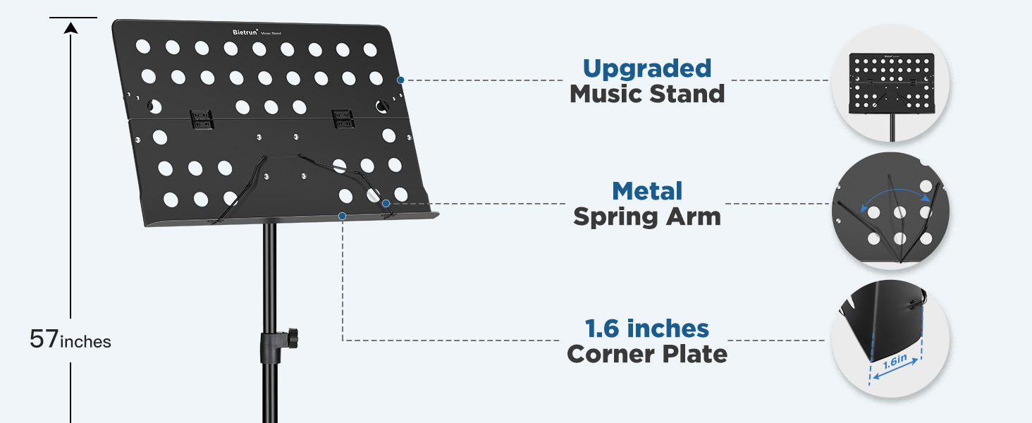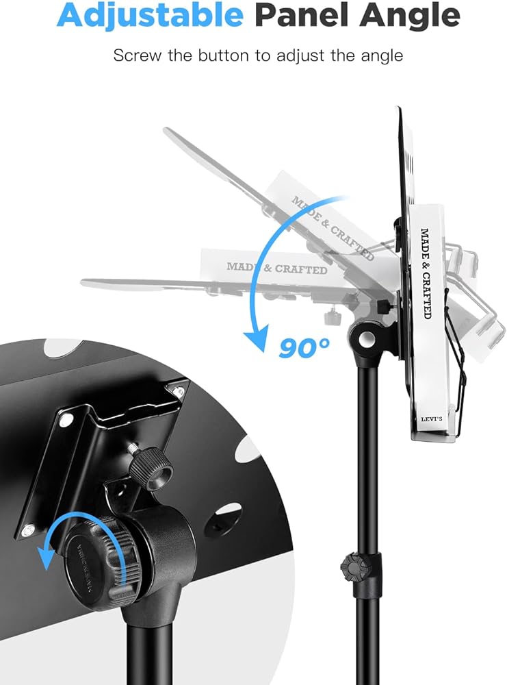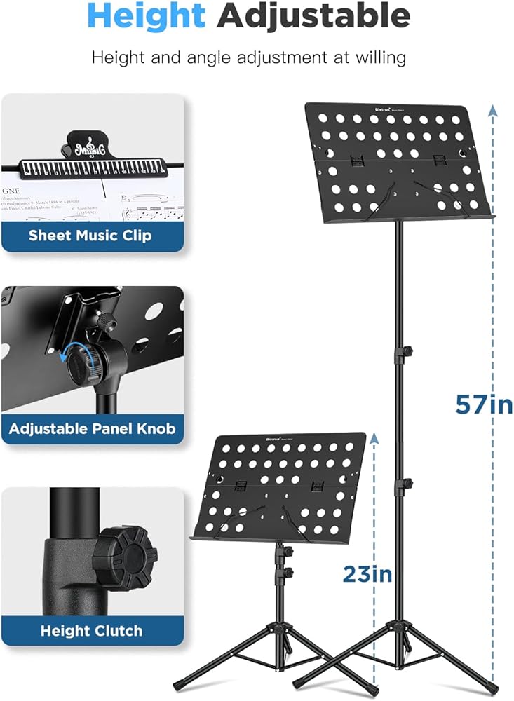 【ارتفاع قابل للتعديل】يمكن تعديل حامل الموسيقى الخاص بنا بحرية من 23 انش إلى 57 انش، وهو مثالي لوضعية الجلوس والوقوف.