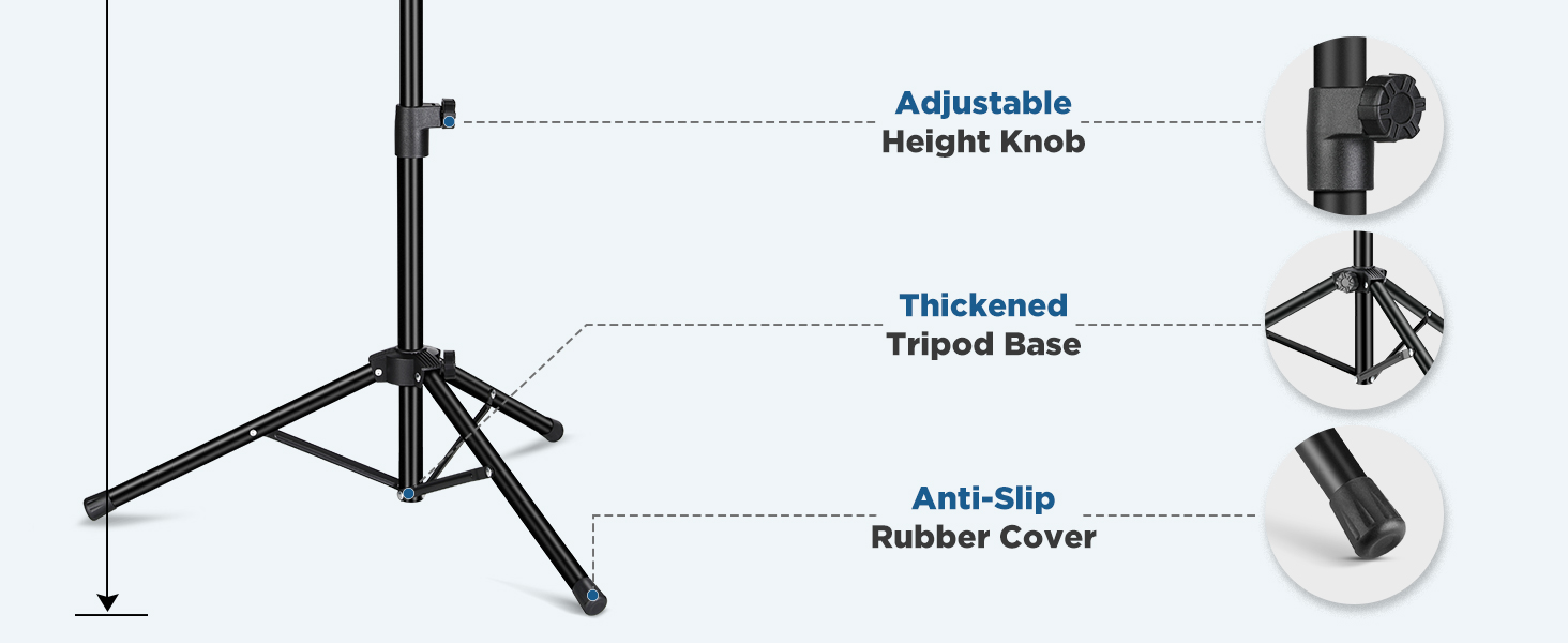 【قاعدة ثلاثية ثابتة】تصميم أطول لوصلة الأرجل ثلاثية القوائم يمكن أن تدعم قاعدة أوسع وثباتًا. الحامل ثلاثي القوائم المعدني المتين ثابت وليس من السهل سقوطه.