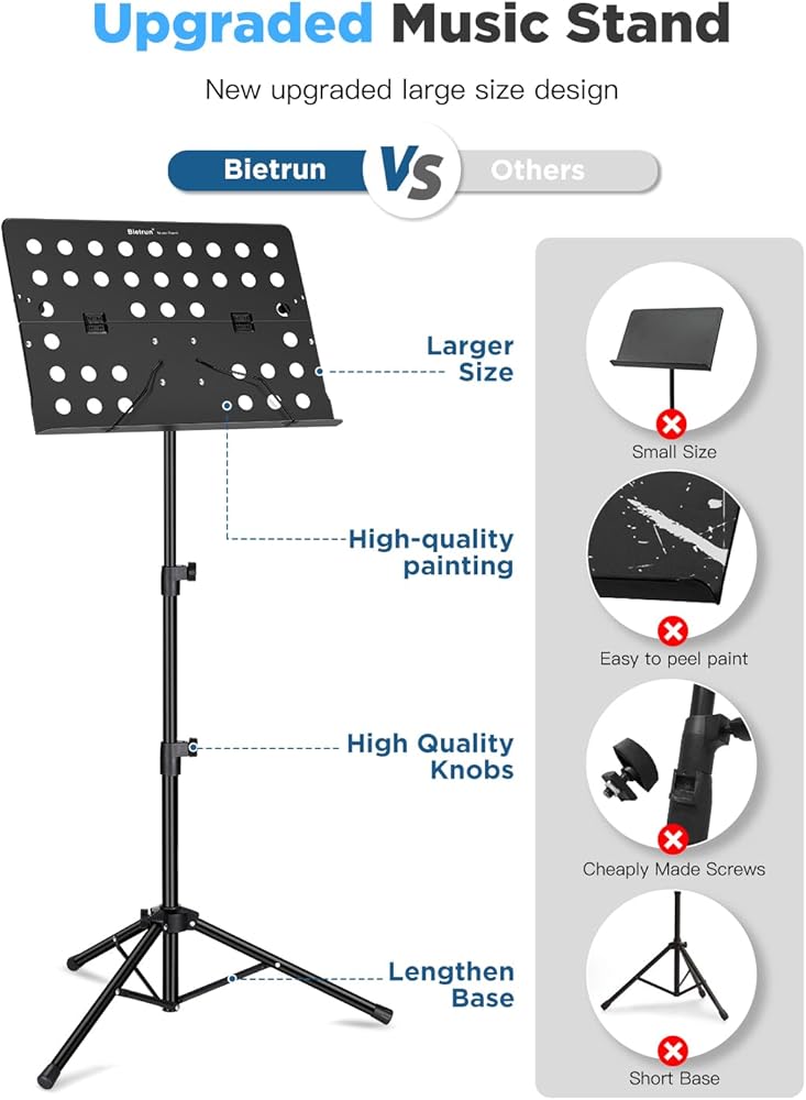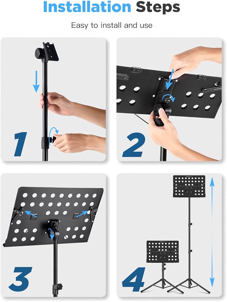 【مجموعة حامل الموسيقى】1 × حامل موسيقى، 1 × حقيبة حمل، 1 × مشبك ورقة موسيقي. نقدم ضمانًا لمدة عام واحد، فلا تتردد في الاتصال بنا.