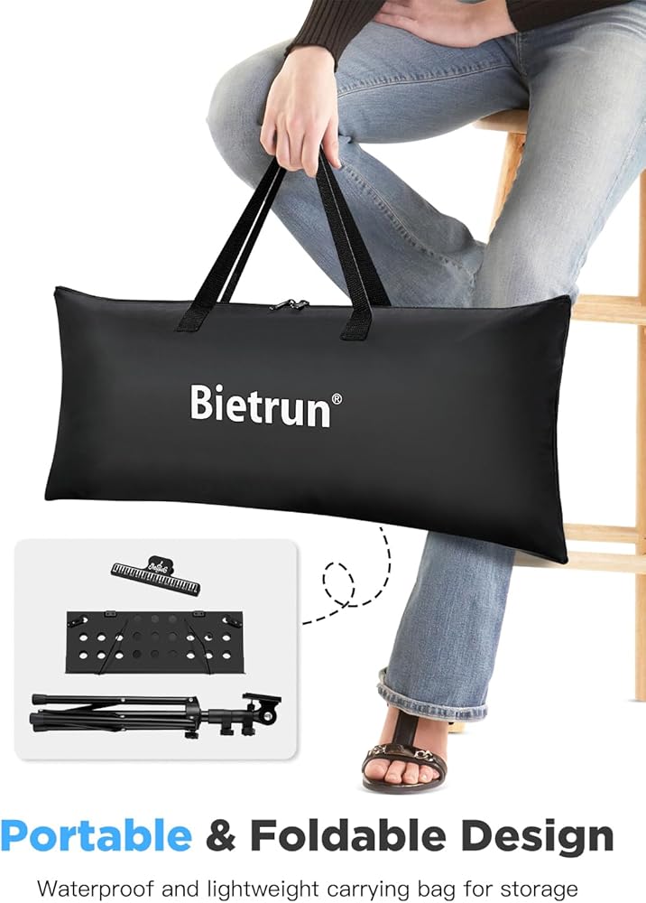 【سهلة الحمل】تصميم هيكل قابل للفصل. يمكن طي حامل الموسيقى الخاص بنا بسهولة وحمله في عبوة صغيرة مع حقيبة الحمل المرفقة.
