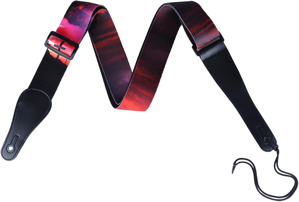حزام جيتار مصمم بطرفين جلدين، مصنوع من قطن البوليستر الناعم