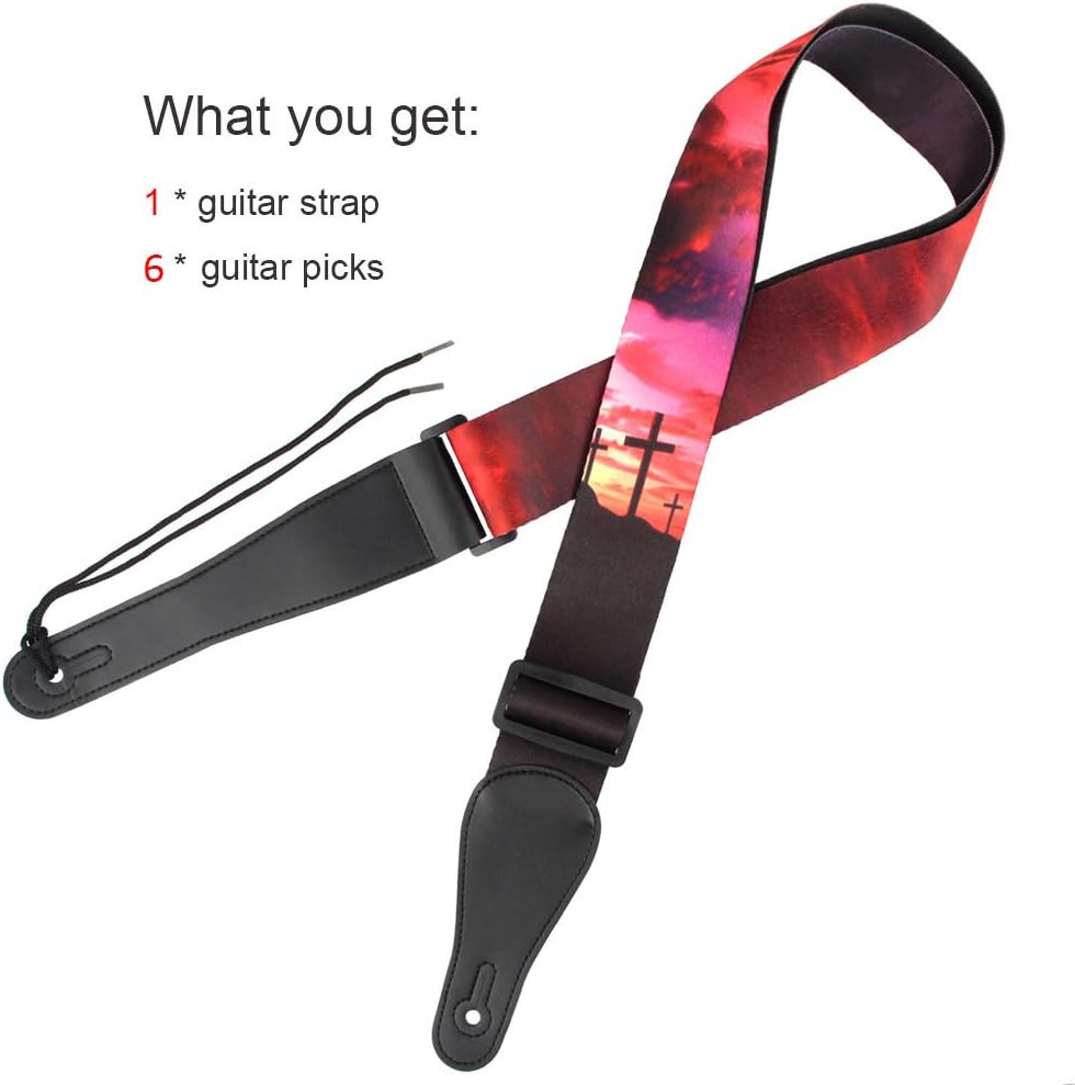 ما تحصل عليه - 1 حزام جيتار، 6 ريشة جيتار. هدية رائعة لعازف الجيتار.
