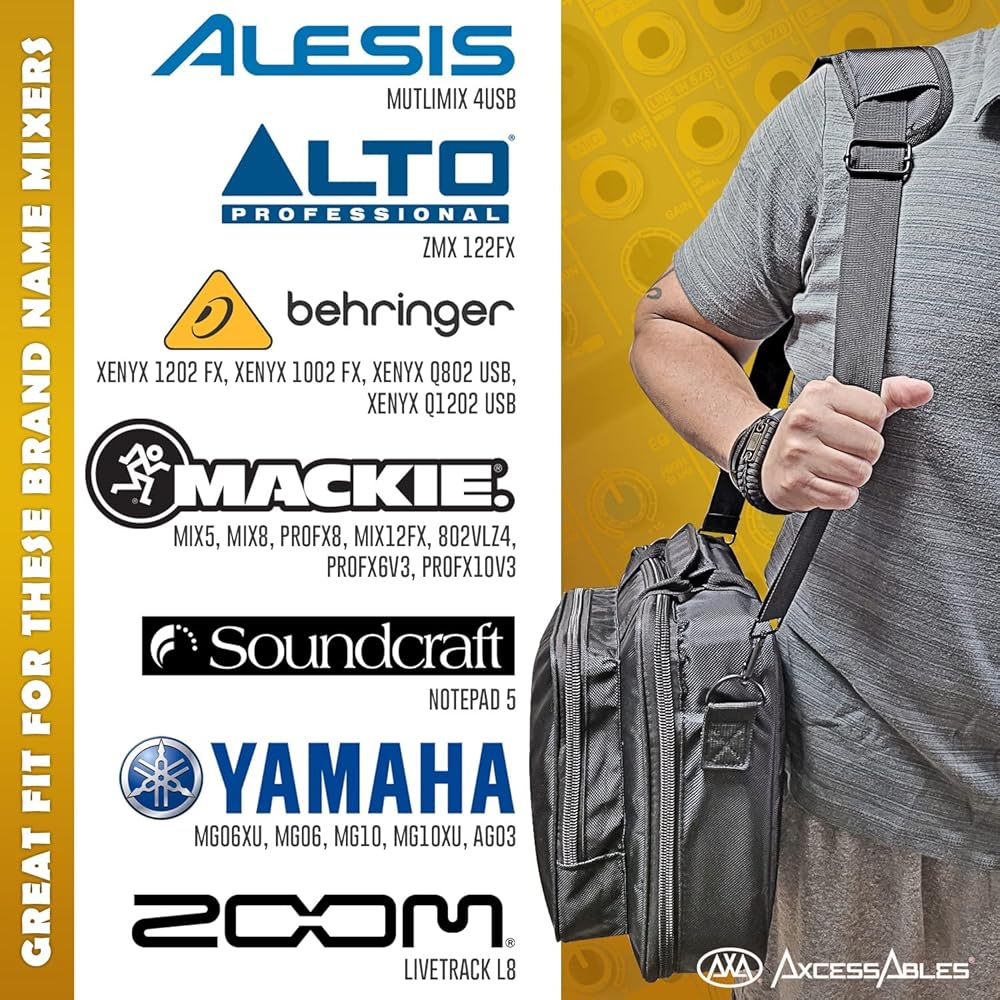 تحتوي أحزمة المقبض على وسادة مقبض فيلكرو لسهولة الاستخدام. بالإضافة إلى ذلك، تأتي حقيبة مزج الصوت مع حزام كتف قابل للإزالة مع بطانة.