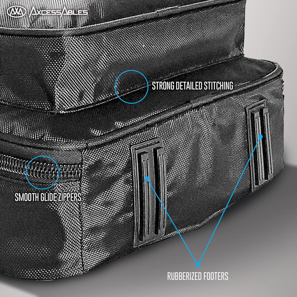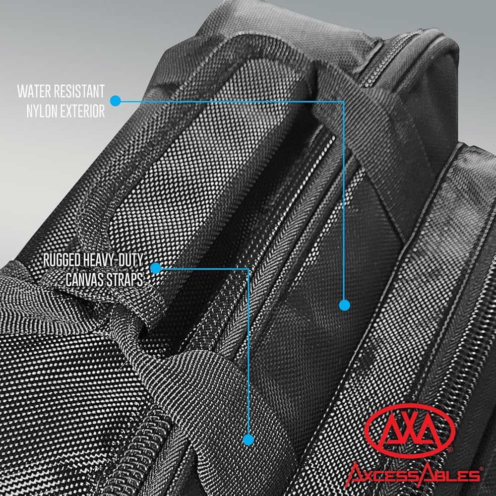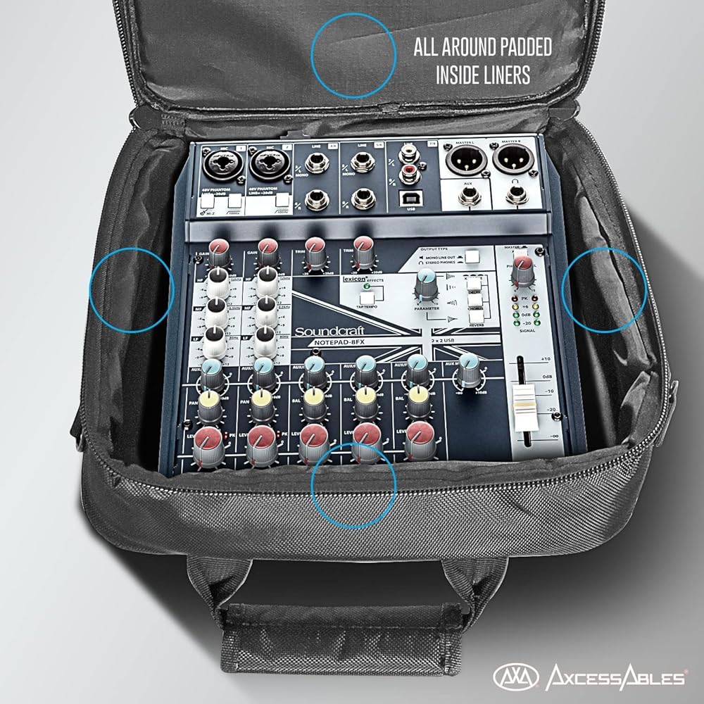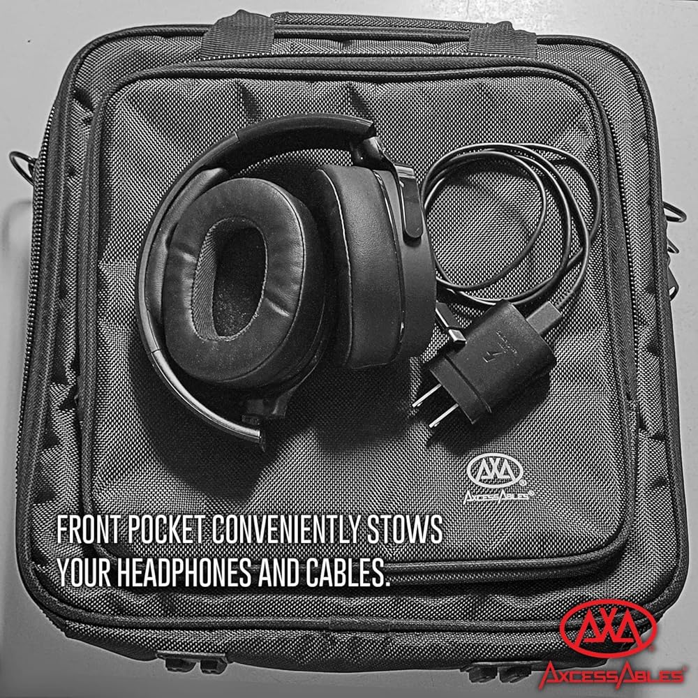 حقيبة موزع/ معدات مبطنة بطبقة خارجية من النايلون المتين مصممة للدي جي المحمول أو منتجي الموسيقى أو البودكاست أثناء التنقل. طبقة حماية مبطنة مزدوجة 10 ملم وبطانة داخلية واقية من التريكو تمنع الخدوش.