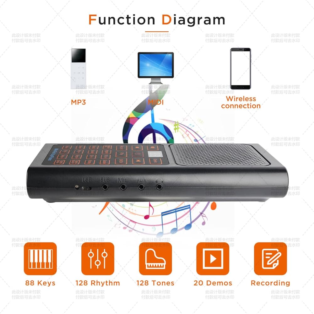 🎹【متعدد الوظائف】- مكبر صوت مزدوج مدمج الصوت أكثر صدمة؛ قم بتوصيل الهاتف لتشغيل الأغاني للتمارين المساعدة؛ يمكن توصيل الميكروفون بالكاريوكي. واجهة متعددة الوظائف، ودعم MID، والصيانة والتسجيل، ومنفذ USB، ومكبرات صوت خارجية، وسماعات الرأس، إمدادات الطاقة الخارجية.
