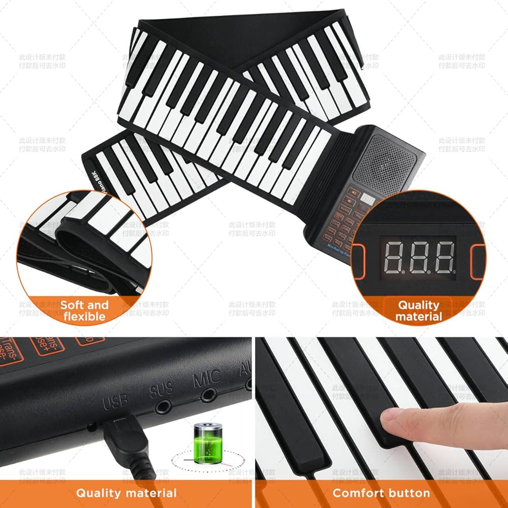 🎹【محمول وخفيف】مع تصميم خفيف للغاية وقابل للطي، بطارية مدمجة قابلة لإعادة الشحن تسمح باللعب أثناء التنقل لمدة تصل إلى 15 ساعة. قم بتشغيل البيانو القابل للطي في غرفة المعيشة أو غرفة النوم أو أثناء التنزه في الحديقة بالخارج!