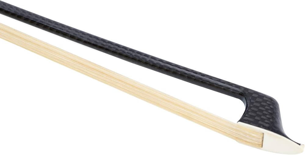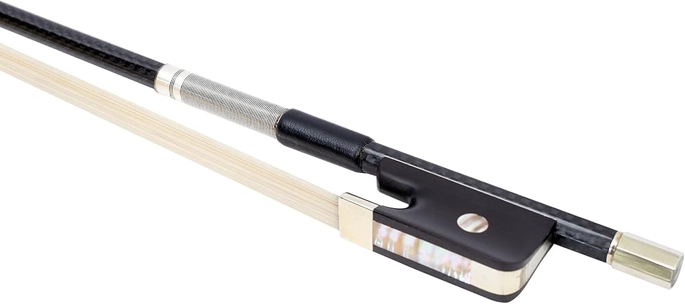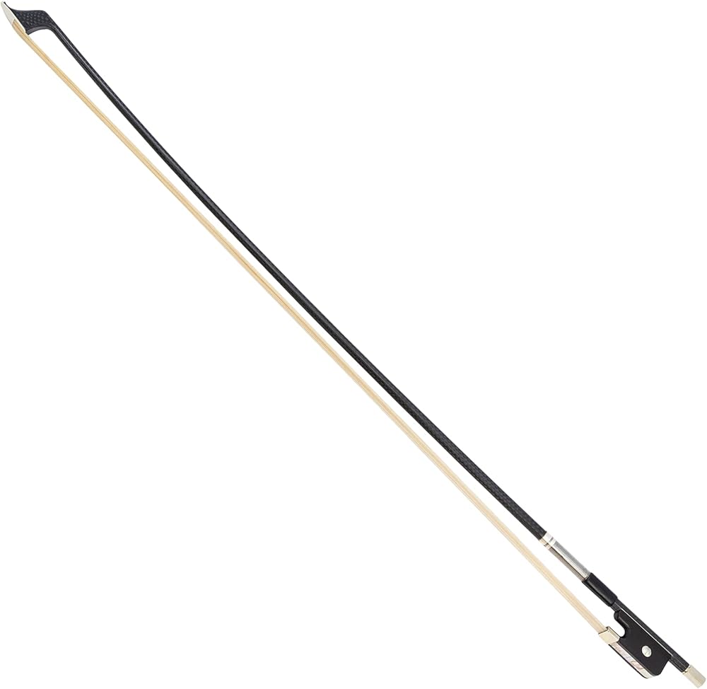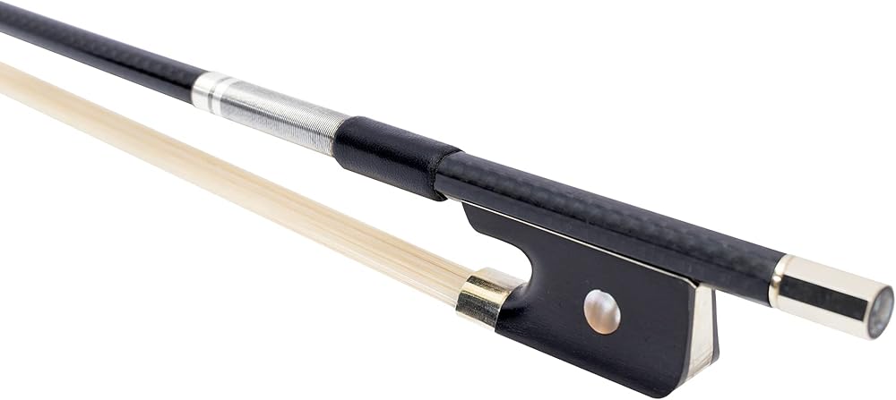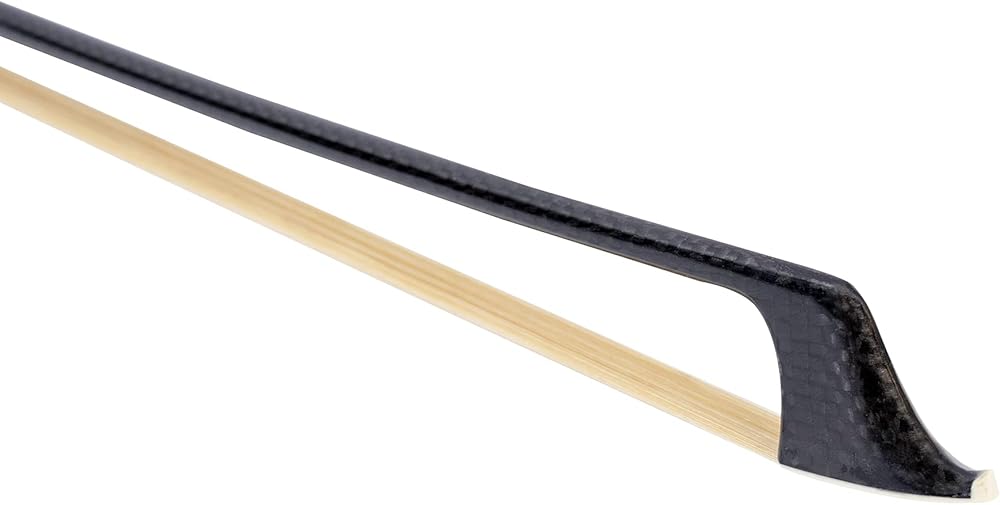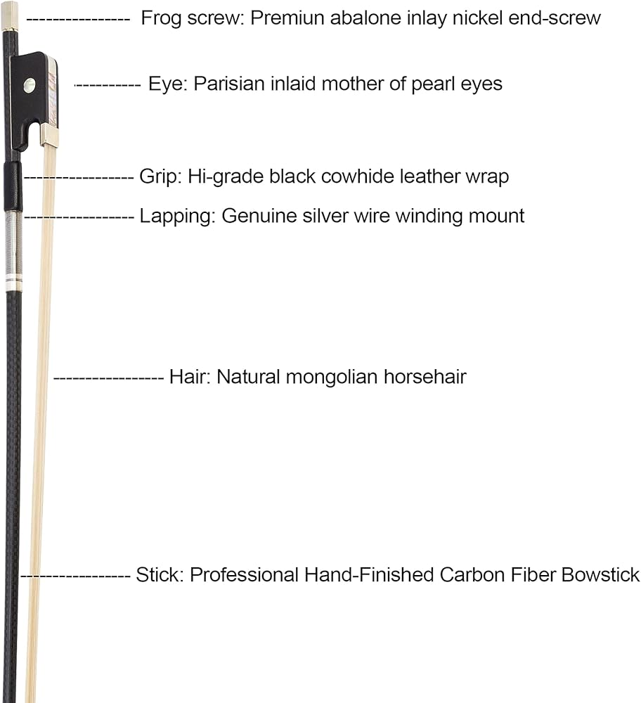 ربطة عنق MI&VI الجديدة الاحترافية من نسيج ألياف الكربون (مقاس كامل 4/4) مع جراب مجاني على شكل ضفدعة من الأبنوس | تثبيت ملتف فضي | وزن مثالي | شعر حصان منغولي فاخر من MIVI Music