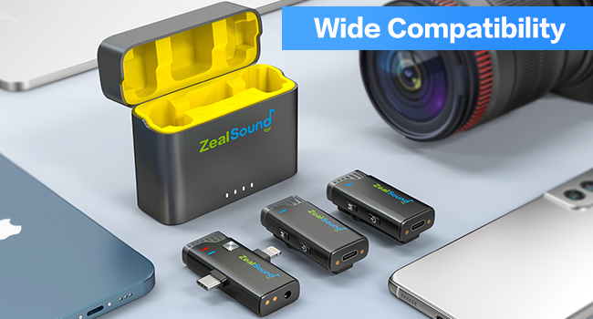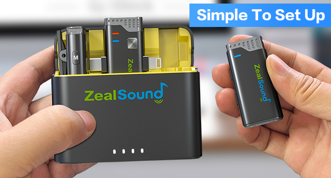 ميكروفون ZealSound اللاسلكي لأجهزة iPhone وiPad وAndroid Phone، قطعتان من مشبك طية صدر السترة على ميكروفون لتسجيل الفيديو والتوصيل والتشغيل، ميكروفون إلغاء الضوضاء للمقابلة Podcast YouTube TikTok