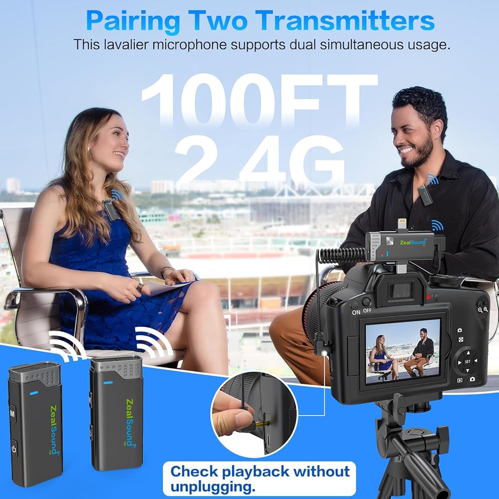 • 【أبعد من 49 قدمًا: نطاق نقل ممتد】التقط لقطات موسعة مع نطاق لاسلكي يزيد عن 49 قدمًا (15 مترًا)، ويتميز بأقل قدر من زمن الوصول لمزامنة الشفاه بسلاسة في مرحلة ما بعد الإنتاج. بفضل تقنية النقل المستقر 2.4G، لن تعطل العوائق والمنعطفات نقل الإشارة المستقر بين جهاز الإرسال والاستقبال. مثالية للتسجيل في الهواء الطلق وجلسات البث.