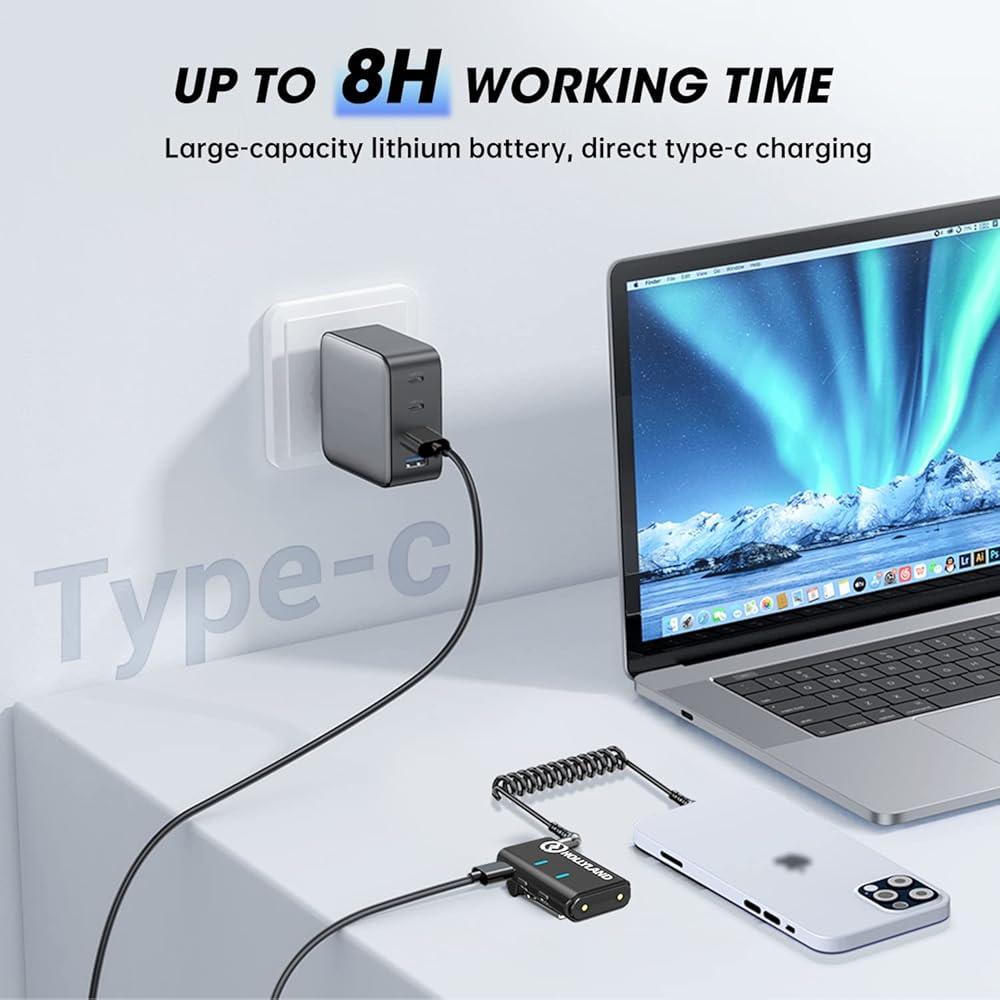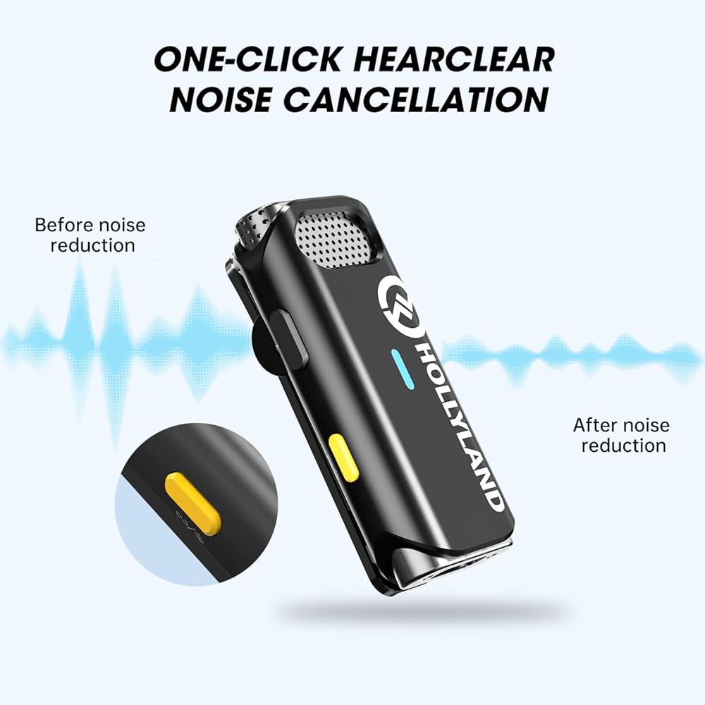 • 👉 بنقرة واحدة استمع إلى جودة صوت HiFi واضحة. ميكروفون لاسلكي - Hollyland Lark M1، الذي يعتمد خوارزمية إلغاء الضوضاء DSP المتقدمة، يأخذ نقرة واحدة على جهاز الإرسال لتشغيل وتصفية الضوضاء المحيطة للحصول على صوت واضح. مع تقنية LC3 Codec ومعدل أخذ العينات المحسن 48 كيلو هرتز/16 بت، يمكنك الاعتماد على جودة الصوت عالية الأداء في أي بيئة تسجيل تقريبًا.