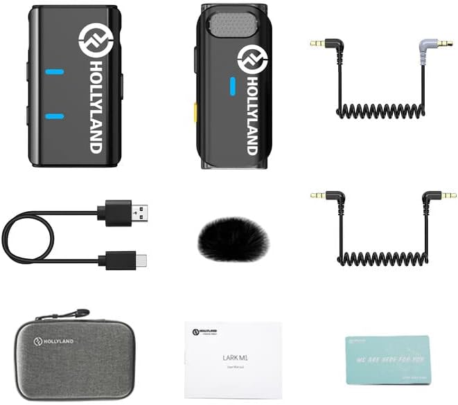ميكروفون Hollyland Lark M1 اللاسلكي Lavalier، ميكروفون مدمج مع خاصية إلغاء الضوضاء، نطاق 656FT، تسجيل فيديو 8H، متوافق مع iPhone، الكاميرا، Android - بدون حقيبة شحن
