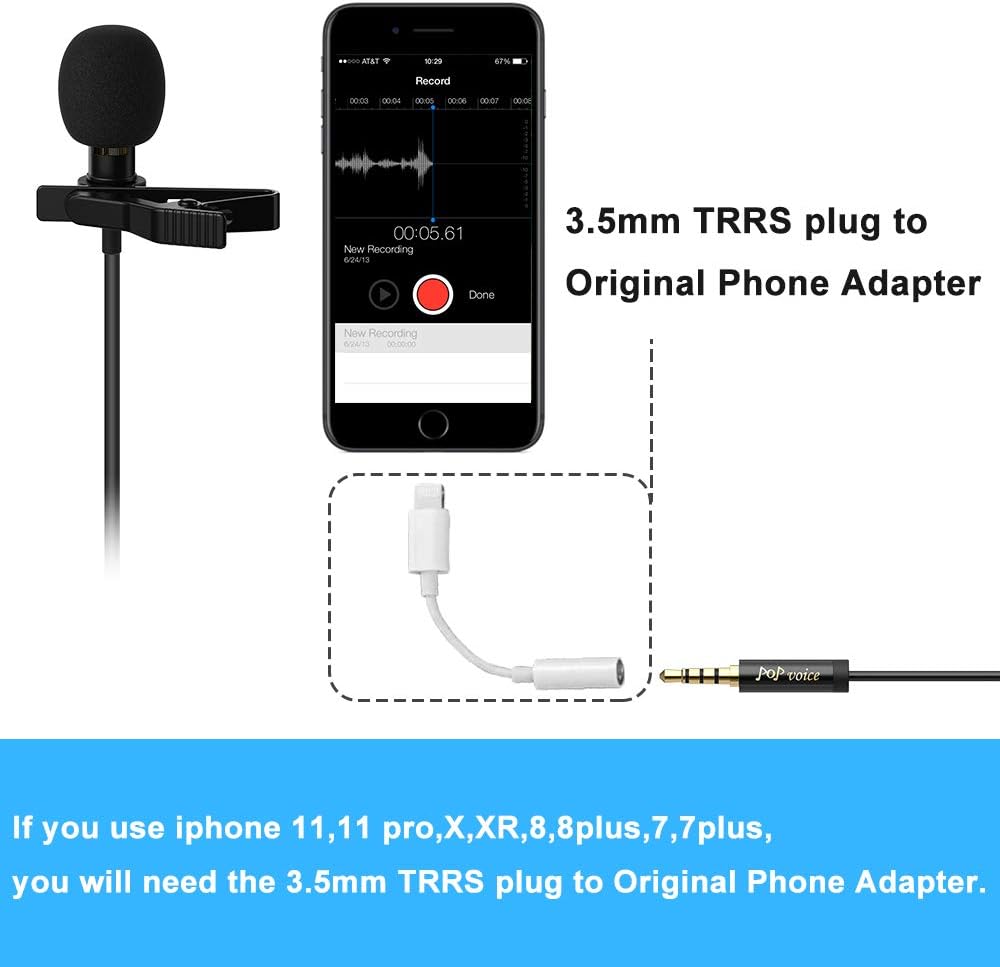 من خلال محول الهاتف الأصلي الذي يأتي مع جهاز ايفون الخاص بك، سيعمل ميكروفون ايفون الخارجي على ايفون 7 و7 بلس وايفون 8 بلس وايفون اكس واكس ار و11 و11 برو. ملاحظة: لديك بالفعل. مع حقيبة تخزين إضافية، يمكنك إحضار ميكروفون لافالير ايفون واندرويد أينما ذهبت.