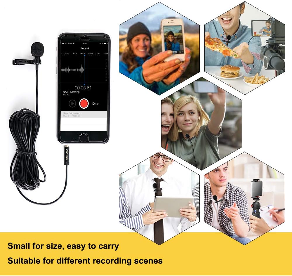 عبوة أصلية 100%، فحص المصنع بنسبة 100%: بينما يستمتع العملاء بالراحة من ميكروفون ايفون، يمكن للميكروفون أن يعمل بشكل مستمر. ميكروفون لافالير للهاتف خفيف الوزن وصغير الحجم. عندما لا تستخدمه، لن يشغل مساحة إضافية. مثالي لتسجيل الموسيقى والمقابلات وتسجيل الفيديو وتصوير مدونات الفيديو والبث المباشر وتسجيل دروس اللياقة البدنية وما إلى ذلك.