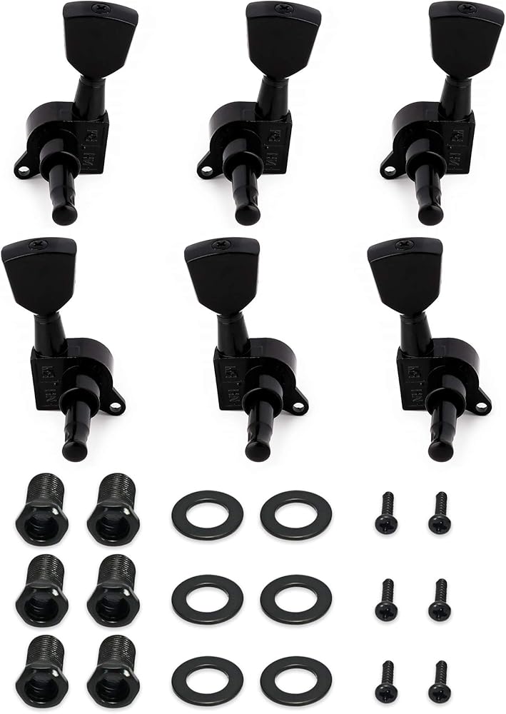 تشمل العبوة: 3 رؤوس آلات جيتار لليد اليمنى واليسرى؛ 6 × حلقات ؛ 6 × براغي؛ 6 × بطانات ملولبة.