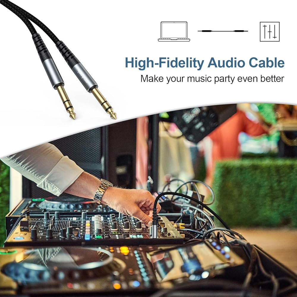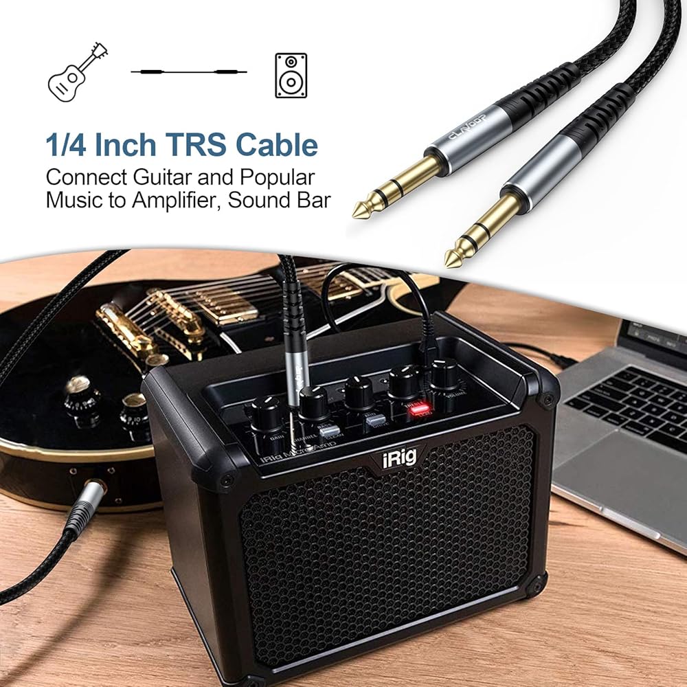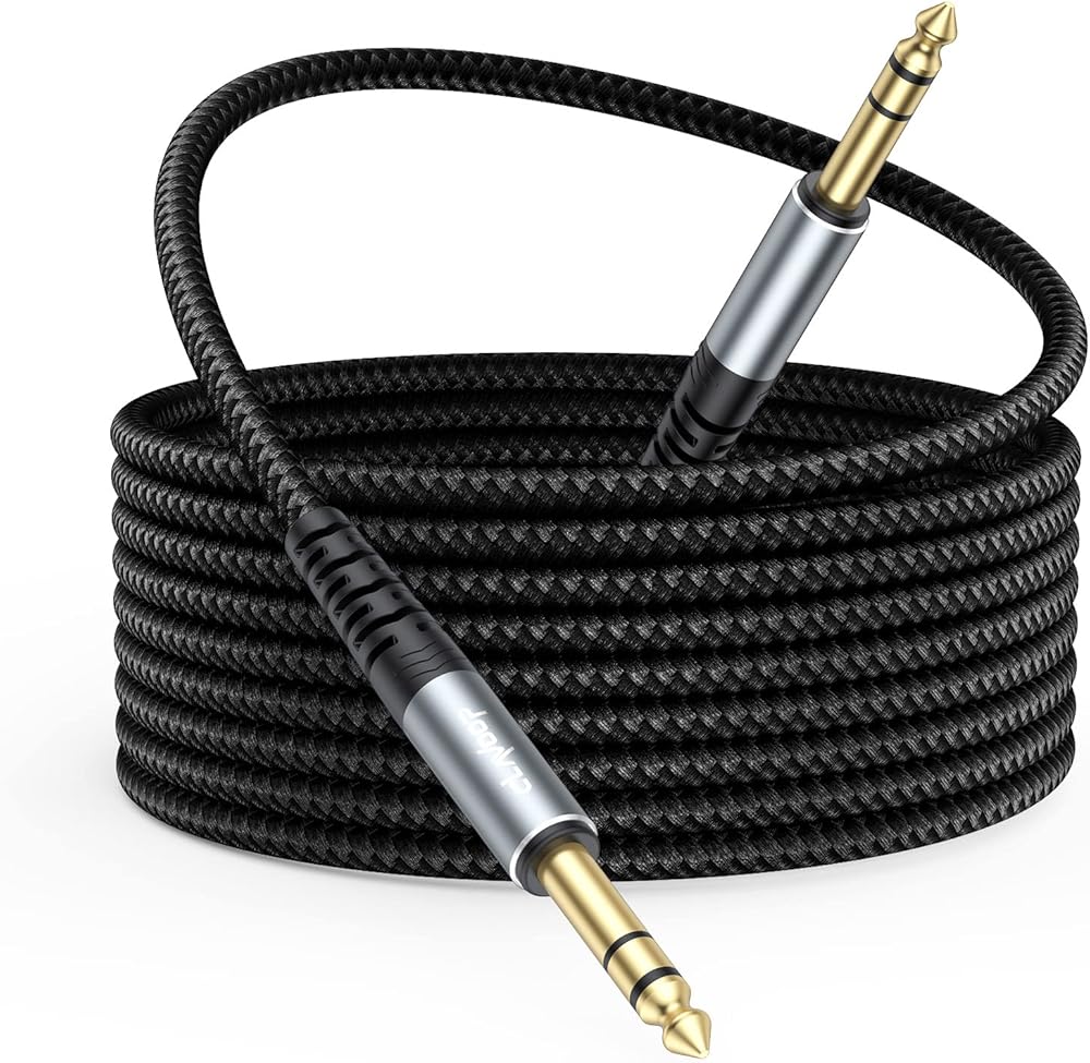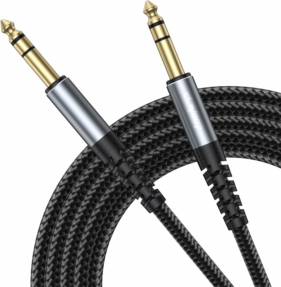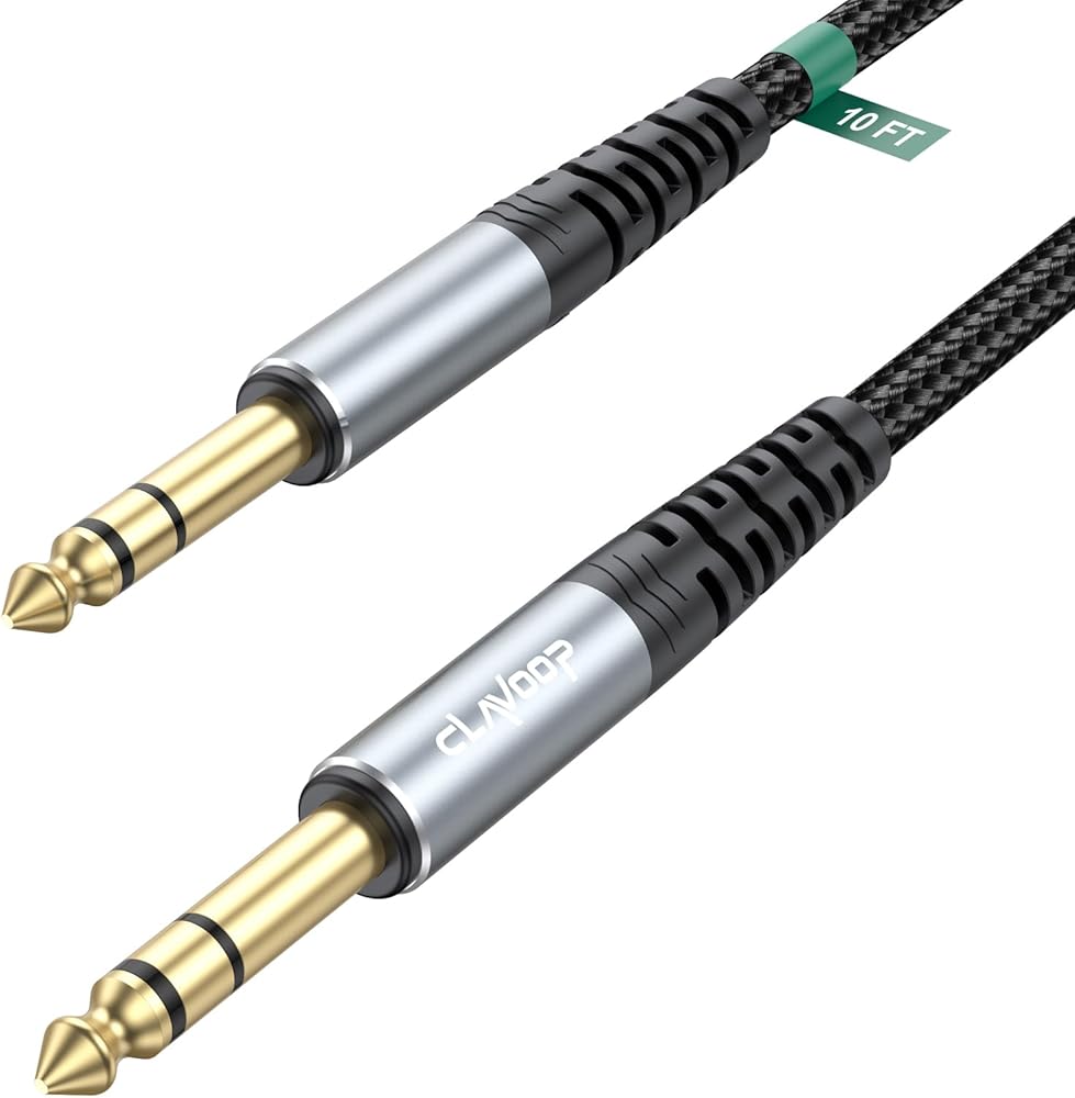 كابل CLAVOOP TRS بطول 1/4 10 قدم، كابلات مكبر صوت ربع بوصة، سلك صوت ستيريو متوازن 1/4 TRS للجيتار الكهربائي ولوحة المفاتيح ولوحة المفاتيح ومضخم الصوت 6.35 مم