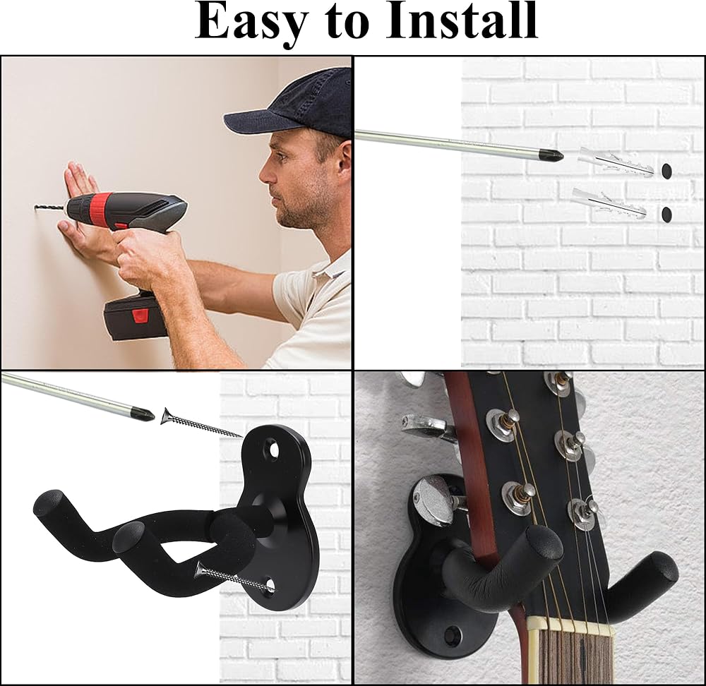 3. سهل التركيب: يتم تضمين براغي تثبيت خطاف الغيتار وأدوات تثبيت الجدار الجصي، يلزم مفك البراغي للتركيب، 4 مسامير تثبيت مع مسامير ورقة روك مثبتة مع كل خطاف جيتار.