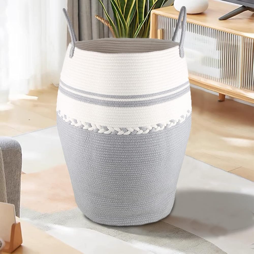 تتميز سلة التخزين الأنيقة هذه بسعة أكبر من أي سلة غسيل أخرى، ويمكنها بسهولة حمل ملابس عائلتك الأسبوعية والحفاظ على منزلك نظيفًا ومرتبًا. يمكنها حمل الكثير من الملابس والألعاب ومنتجات القماش. لا غنى عنها لحياتك المنزلية.