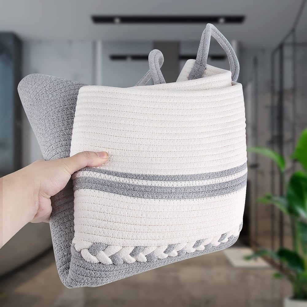 سلة السلة مصنوعة من خطوط خياطة دقيقة ومصنوعة يدويًا، منظم سلة لطيف لغرفة النوم أو الحمام وغرفة المعيشة وغرفة الغسيل ويمكن استخدامها لسنوات عديدة.