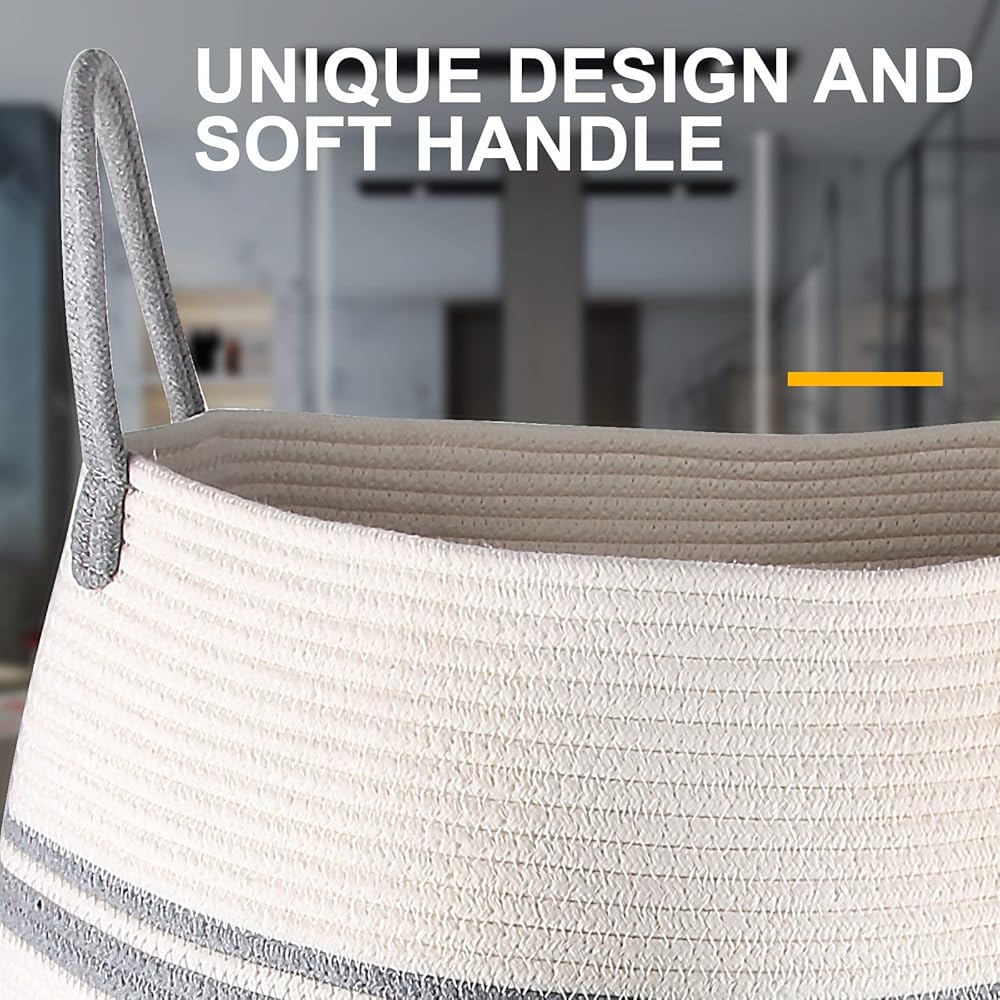 سلال التخزين مصنوعة يدويًا من حبل قطني، مصنوعة من قطن عالي الجودة، ناعمة ولكنها متينة، سلة تخزين لا توجد حواف حادة أو أسطح صلبة على هذه السلة الكبيرة المنسوجة، تعتني جيدًا بأطفالك.