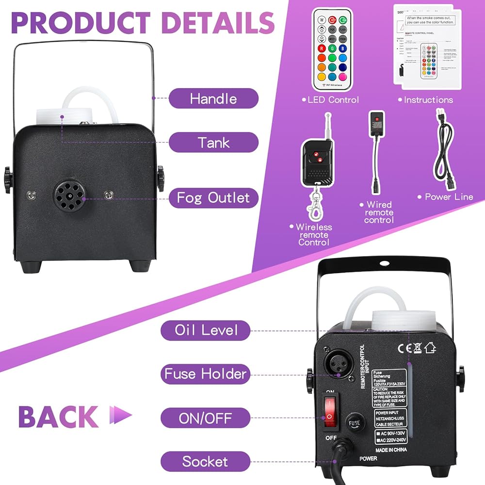 صناعة آمنة ورائعة: مصنوعة من معادن الحديد والألومنيوم عالية الجودة، ماكينة الضباب هذه ذات الأضواء مصممة لتدوم طويلاً؛ إنها قوية ومتينة ومصممة لتحمل الاستخدام المتكرر؛ بالإضافة إلى ذلك، فهو يأتي مزودًا بوظيفة الحماية من الحرارة الزائدة، مما يضمن السلامة لك ولضيوفك