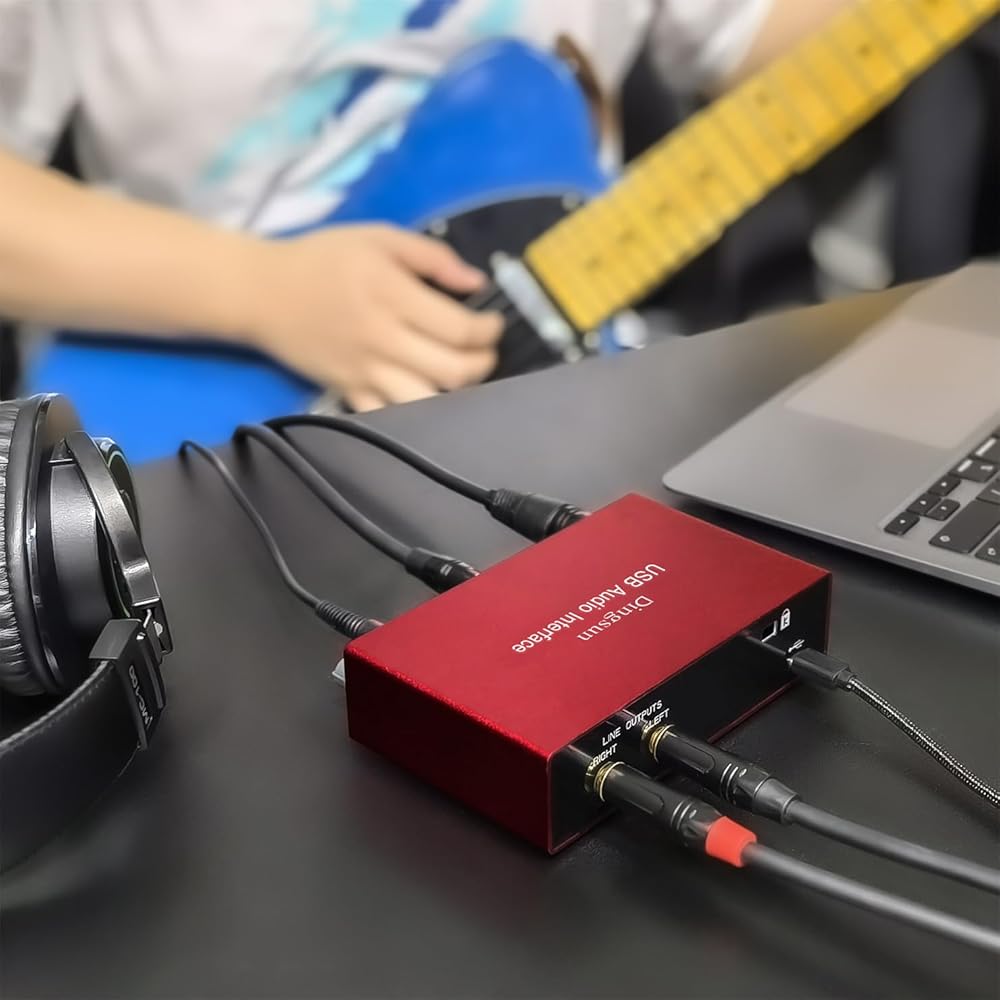 واجهة الصوت دينج صن USB هي المنتج المفضل للعديد من محبي الموسيقى، مما يسمح لك بتسجيل الموسيقى في أنماط مختلفة من خلال البرامج ومشاركتها مع الأصدقاء أو البرامج الاجتماعية.