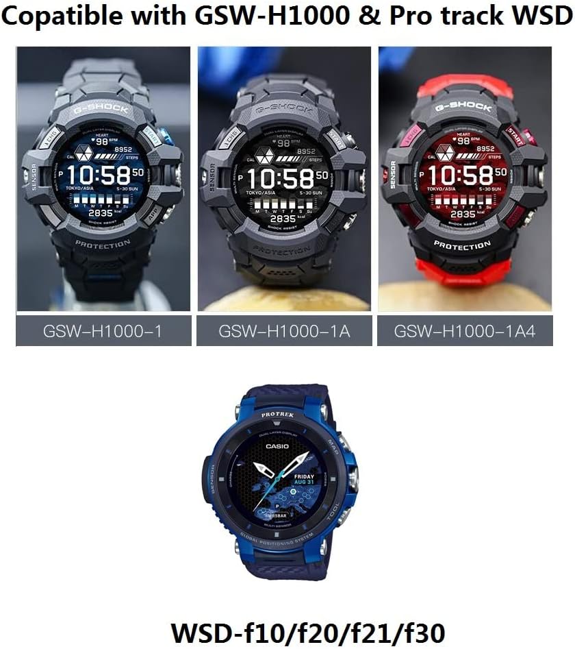 متوافق مع ساعات كاسيو جي شوك جي سكواد برو GSW-H1000 (GSW-H1000-1، GSW-H1000-1A، GSW-H1000-1A4) وسلسلة دبليو اس دي (WSD-F10، WSD-F20، WSD-F21، WSD-F30)
