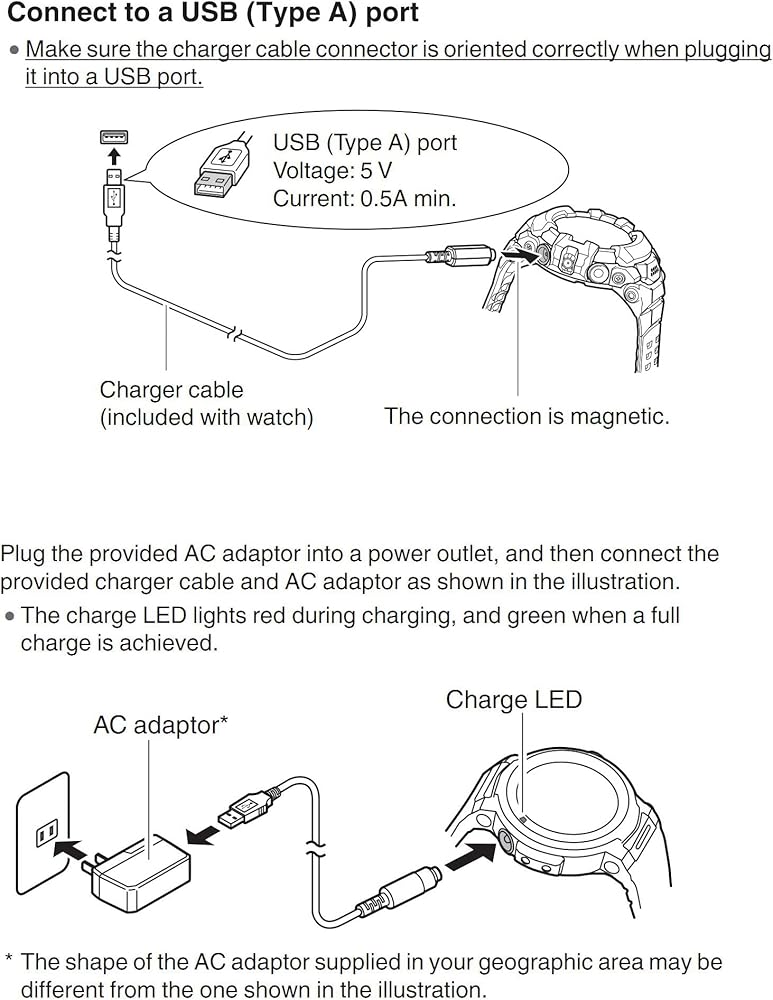 متوافق مع ساعة كاسيو جي-شوك جي-سكواد برو GSW-H1000(GSW-H1000-1,GSW-H1000-1A4) وسلسلة WSD (WSD-F10,WSD-F20,WSD-F21,WSD-F30) طول ساعة كاليب: 1 متر (كيبل أطول من الكابل الأصلي) كابل كابل طاقة معدل طاقة كابل كابل طاقة 5 فولت/2 امبير