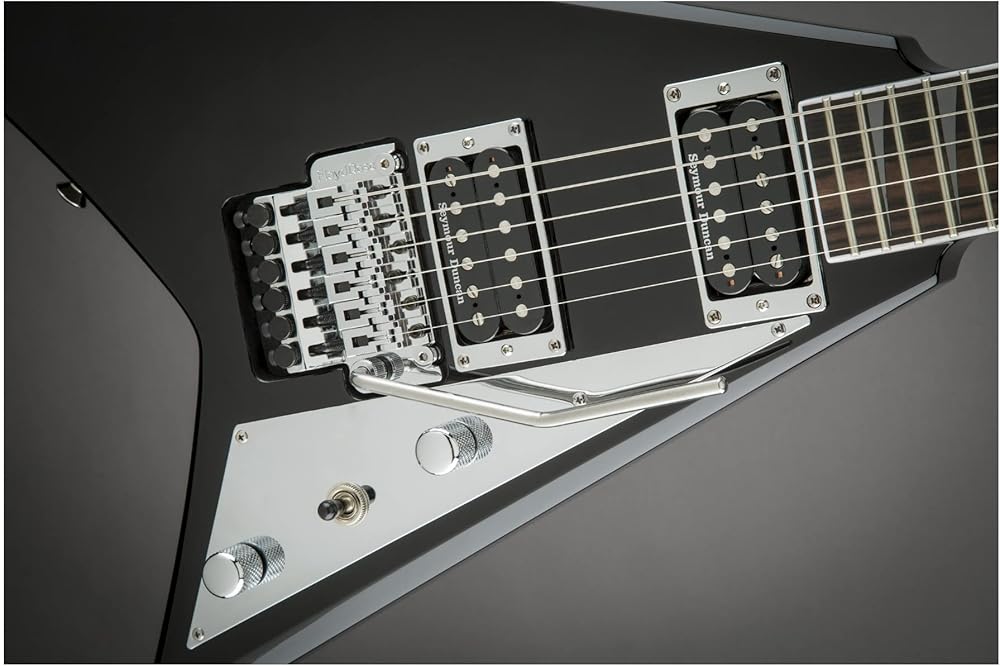 برو رودز RR جيتار كهربائي أسود. كان أول عميل لجاكسون هو عازف الجيتار الأسطوري راندي رودز، الذي طلب إنشاء نموذج يلبي متطلبات العزف الذي يمثل تحديًا تقنيًا ببراعة بصرية. وتستمر النتيجة في التطور، لتلبي احتياجات اللاعبين الذين بلغوا سن الرشد وهم يستمعون إلى أعماله الرائدة. يعد Pro Rhoads RR مطالبًا فخورًا بعرش القيثارات عالية التقنية المصممة للتمزيق. يحرك زوج من شاحنات سيمور دنكان الحديثة النغمة المرنة لهذا الجيتار - التقاط جسر هامبوكينغ JBTM TB4 الواضح وبيك اب الرقبة الدافئ '59TM SH1N يتحدان للحصول على نغمة مرنة ومتوازنة للغاية، مع الكثير من الإخراج العالي للتنظيف النقي والتشويه الخام البذيء. تحتوي رقبة القيقب المكونة من قطعة واحدة فائقة السرعة على زوج من قضبان الجرافيت للتقوية ضد ضغوط درجة الحرارة والرطوبة، وتظل وفية لأداء لا يهزم بينما تم تصميم شكل الرقبة السريع للعمل على الجيتار المتوهج، وإزالة أي عوائق أمام العزف بأصابع الأسطول. ومنح وصول أسهل إلى الحنق العلوي. تم تصميم لوحة الأصابع ذات نصف القطر المركب مقاس 12 - 16 بوصة للعب بسرعة الضوء عالية التقنية - وهي أكثر انحناءً بواسطة الصمولة من أجل وتر مريح، فهي تتسطح أثناء تحريك الرقبة السريعة من أجل سرعة لعب سريعة بشكل متزايد وانحناءات واسعة دون القلق. يضيف اهتزاز Floyd Rose FRT-O2000 الحساس ذو القفل المزدوج اهتزازًا معبرًا إلى النغمات والأوتار بنقرة إصبع أثناء العمل بالتنسيق مع صامولة قفل Floyd Rose R3 لأداء ضبط الصخور الصلبة والتنغيم الدقيق. يعد هذا الجيتار الأكثر شهرة من بين عروض جاكسون التي لا تعد ولا تحصى، فهو يحمل الجماليات المألوفة التي تجعل جاكسون مطلوبًا لأداء عازفي الجيتار. من الأجهزة السوداء بالكامل إلى التطعيمات الفريدة، وغراب الرأس المدبب 6 في الخط وتصميمات الجسم الثورية، فإن هذه الآلة هي من إبداع جاكسون بشكل واضح. لا تقوم جيتار جاكسون بدفع الظرف فحسب، بل تقضي عليه - وPro Rhoads RR ليس استثنائيًا...