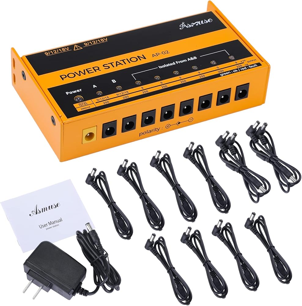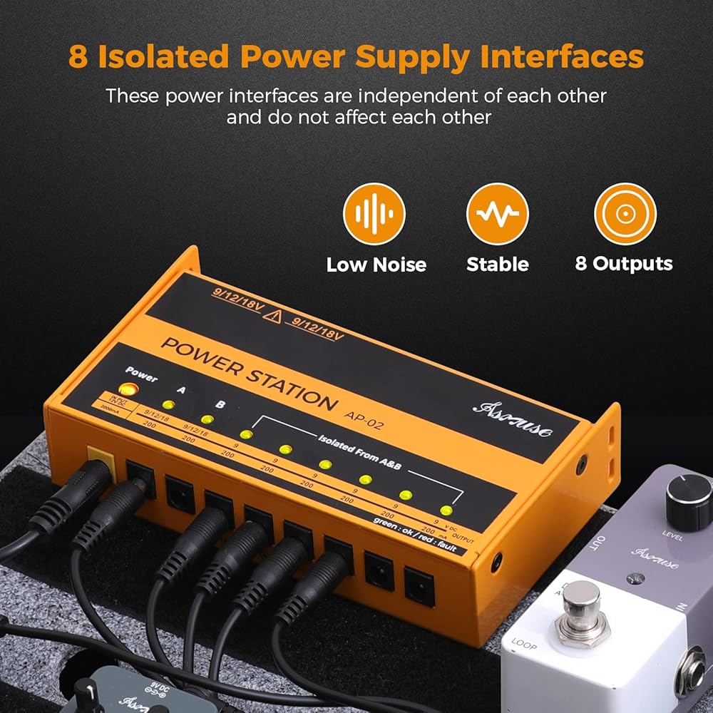 🎸【 Lower Noise 】Built-in powerful noise filter, which can greatly improve the noise problem.Asmuse pedal board power supply is so quiet that you can enjoy playing music with clear and firm sound.