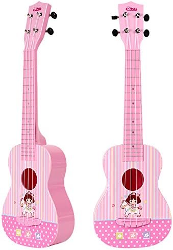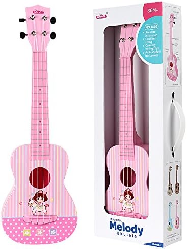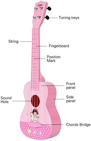باولي لعبة القيثارة البلاستيكية الجميلة باللون الزهري الفاتح مع نغمة دقيقة ومفاتيح ضبط ممتازة لفتح الخيط ولوحة خلفية على شكل قوس