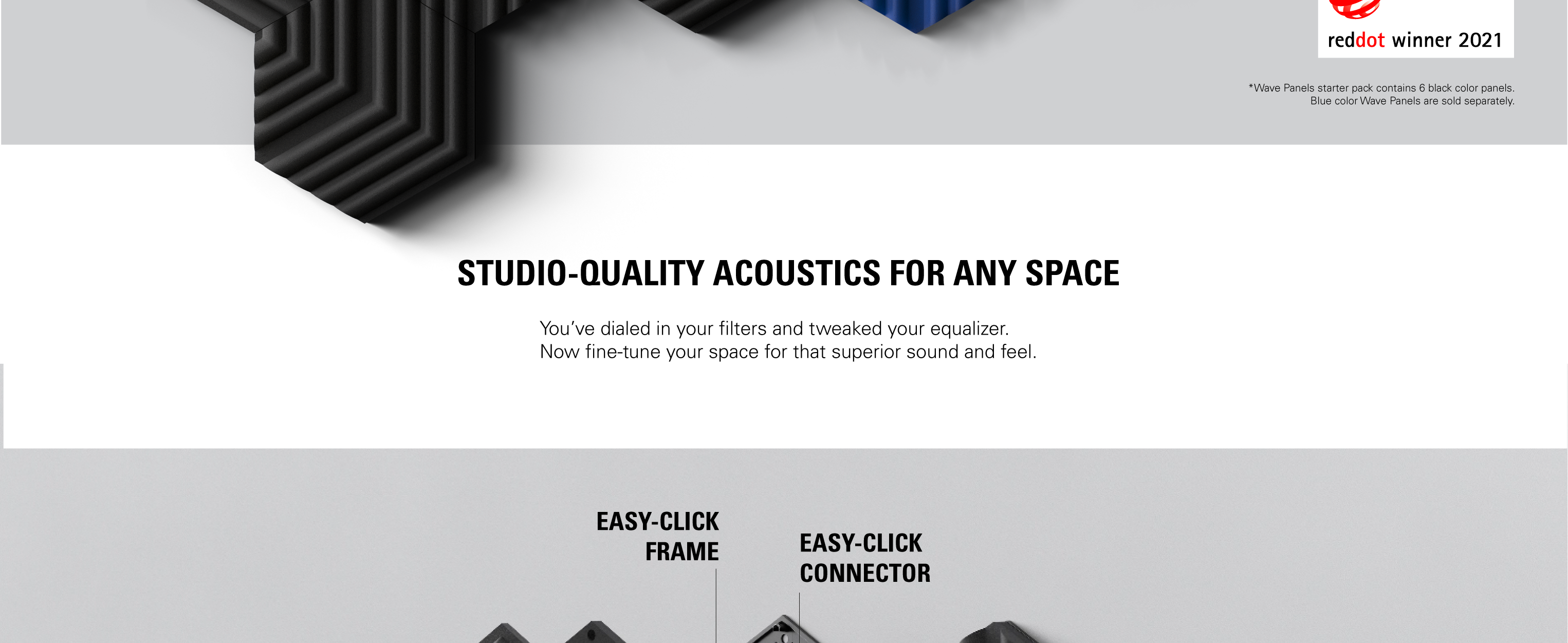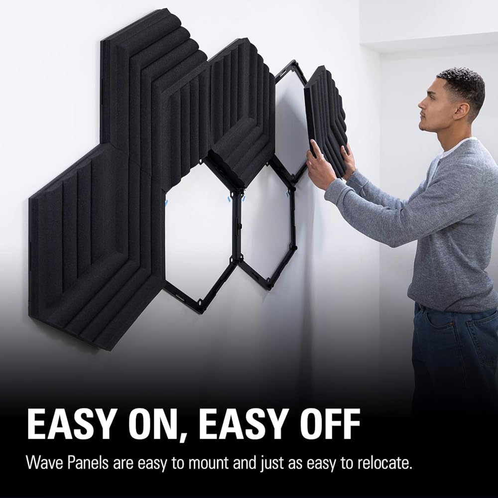 تعمل لوحات Wave على تحويل أي مساحة إلى بيئة صوتية احترافية. طبقتان من الرغوة ذات كثافات متفاوتة تقلل من صدى الغرفة وانعكاسها. يعني الشكل السداسي أنه يمكن تكوين Wave Panels لتناسب أي مساحة بينما تجعل إطارات EasyClick الخاصة عملية التثبيت أمرًا سهلاً.