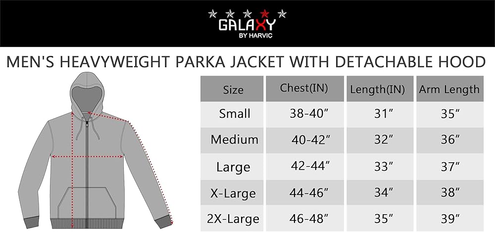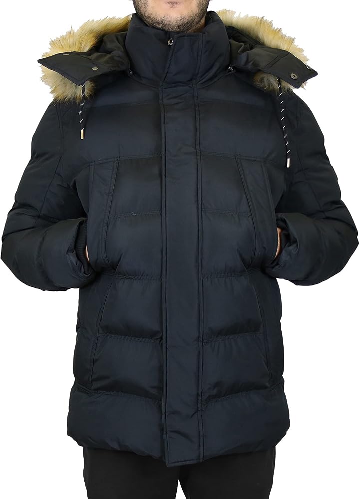 Galaxy by Harvic Men للرجال الثقيل سترة باركا القابلة للفصل مع فرو وإغلاق الرباط