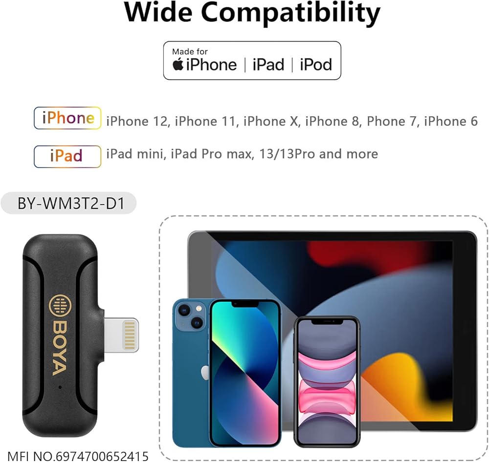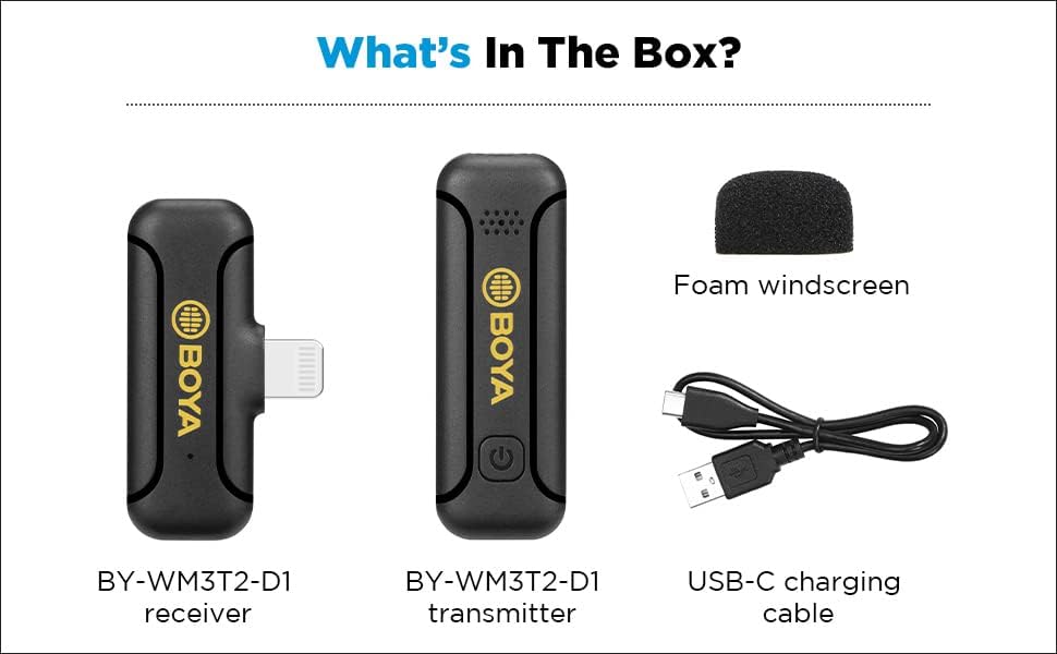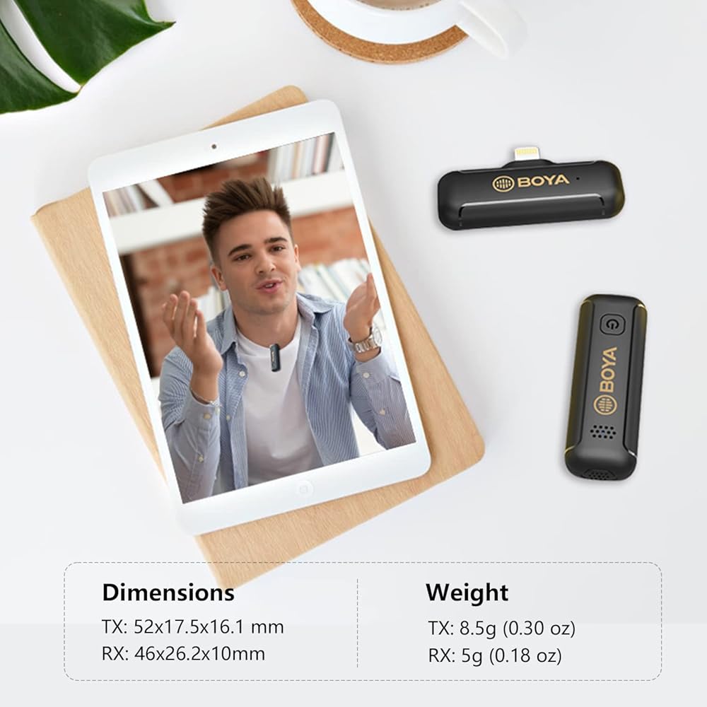【ميكروفون لاسلكي لهاتف USB-C】BY-WM3T2 U2 هو نظام ميكروفون لاسلكي صغير بتردد 2.4 جيجا هرتز يوفر صوتًا عالي الجودة للبث المباشر ومدونات الفيديو وتسجيل الدورات التدريبية وتطبيقات التقاط الصوت الأخرى. BY-WM3T2-U2 متوافق مع معظم أجهزة Android الأجهزة المزودة بمنافذ USB-C، بما في ذلك الهواتف الذكية والأجهزة اللوحية. تحتوي على 2 جهاز إرسال و1 جهاز استقبال.