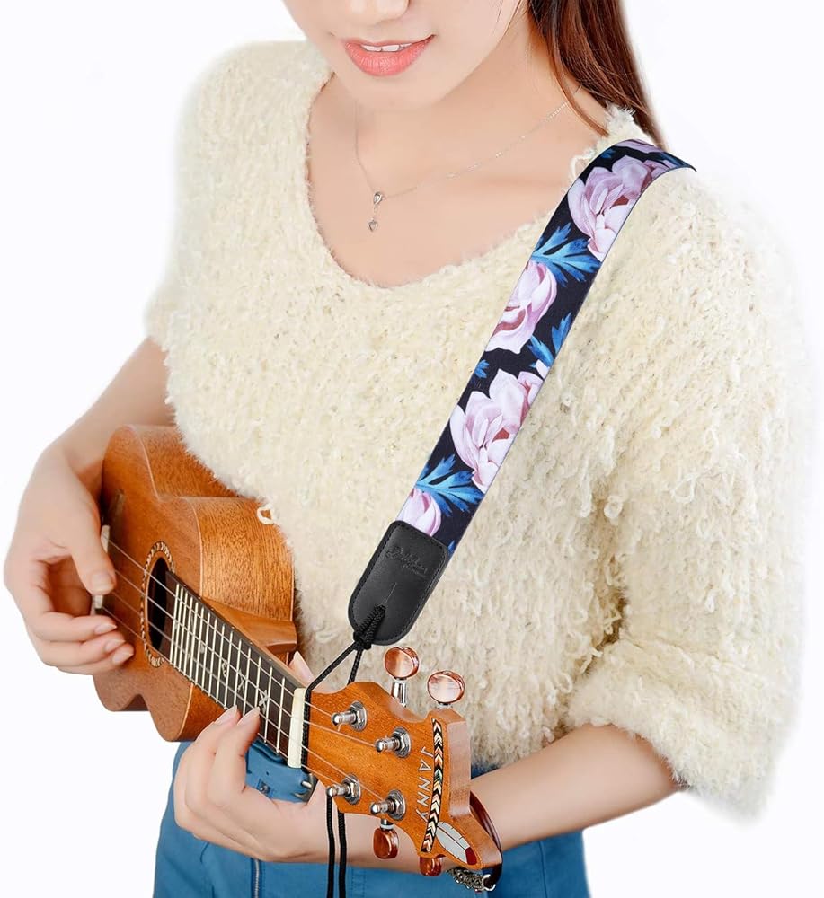 تصميم فريد من نوعه على شكل زهور: حزام يو كي هذا بنمط زهور، مزين بزهور منعشة وأنيقة. دع حلية الزهور تنعكس بشكل مثالي في صوت القيثارة.