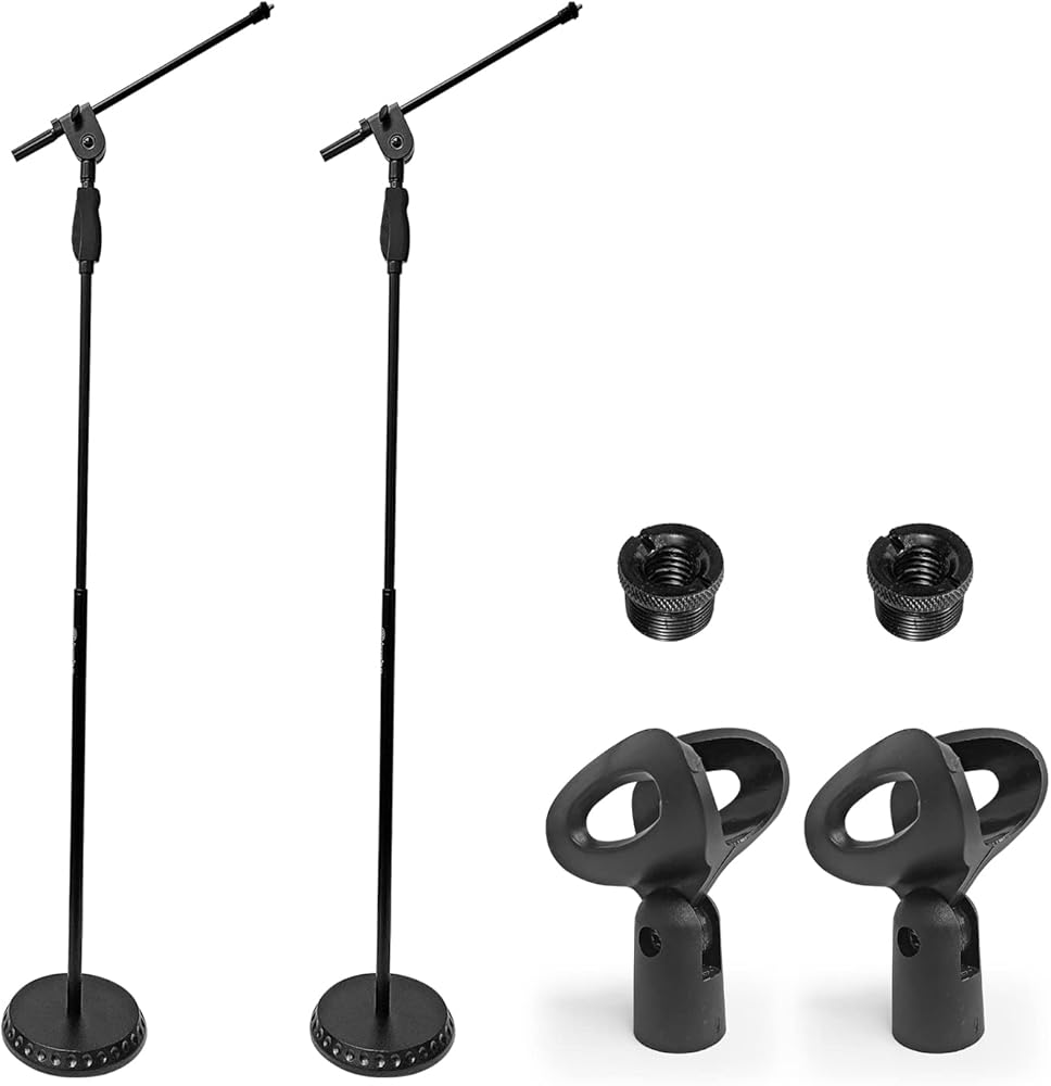 - يناسب كلاً من حاملات مشابك الميكروفون الأمريكية (5/8 بوصة) واليورو (3/8 بوصة). يتم تضمين مشبك ميكروفون بلاستيكي مرن عالمي.
