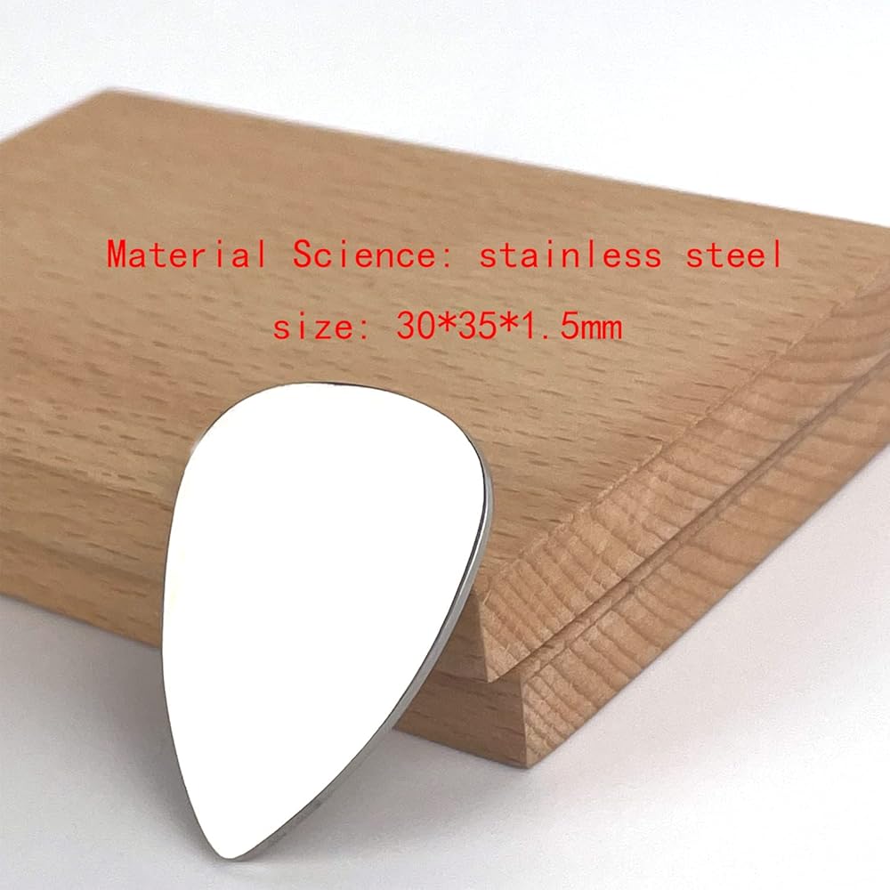 مصنوع من الفولاذ المقاوم للصدأ، وهو معدن صلب بنقوش ممتازة. اختيار الجيتار متين. لا يصدأ ولا يسبب حساسية ولا يبهت ولا رطب ولا يتشوه.