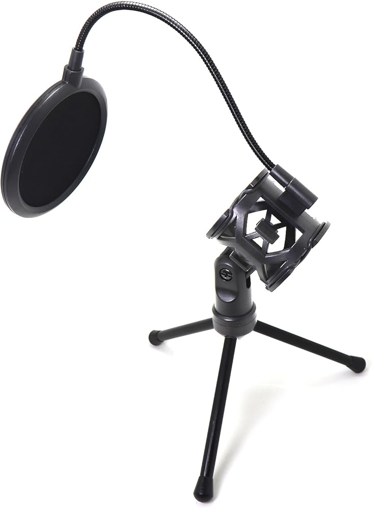 حامل احترافي للميكروفونات ذات القطر الكبير، مع فلتر POP شبكي من النايلون بطبقة مزدوجة