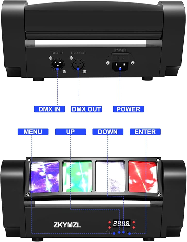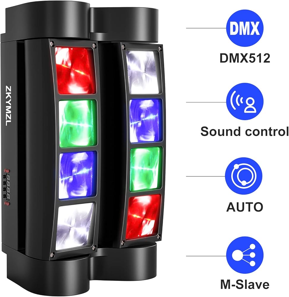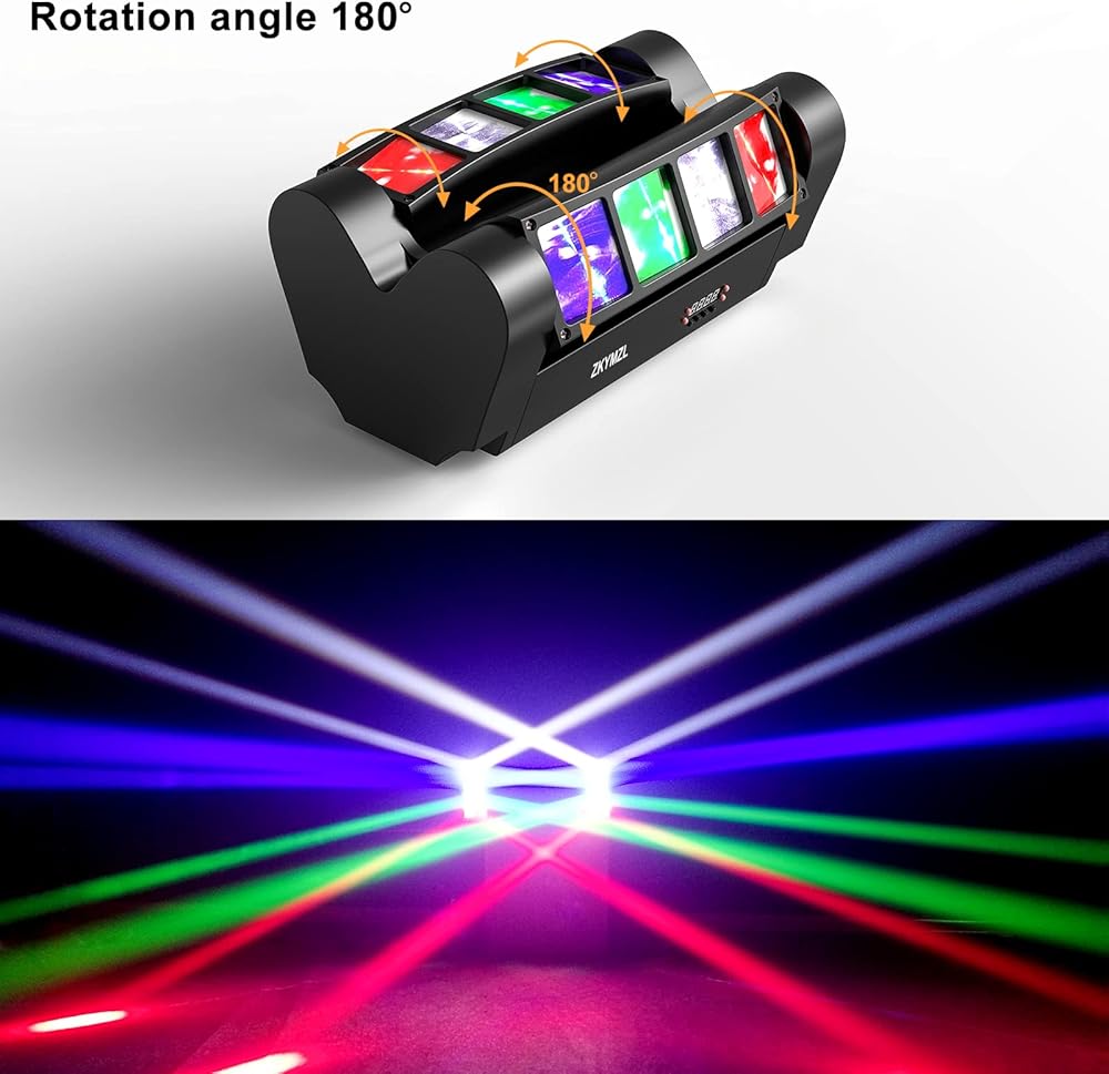 【إضاءة LED ذات تأثير كنس مزدوج سريع】Y1: 180 درجة، Y2: 180 درجة من محركات متدرج ناعمة وهادئة، كل جانب من مصابيح الرأس المتحركة مع 4 مصابيح LED أحادية اللون تتحرك بشكل مستقل، وكل شعاع لا يمكنه فقط خلق تأثير ضوء المطاردة، ولكن يمكن أيضًا الاستمرار في تحويل التأرجح.