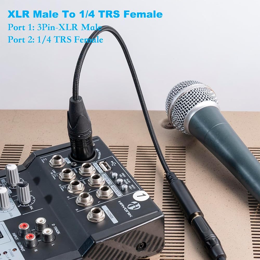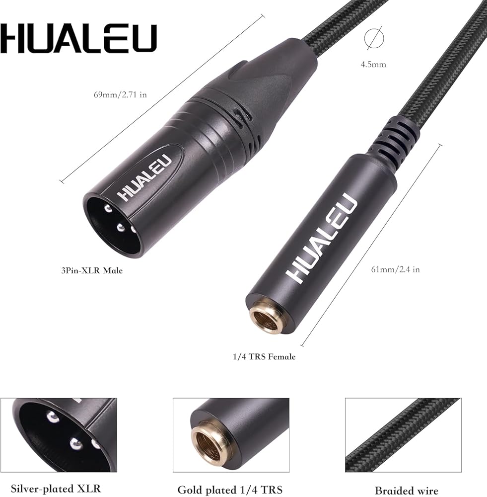 HUALEU 1FT ذكر XLR إلى 1/4 6.35 مم كابل أنثى، XLR ذكر متوازن إلى 1/4 بوصة أنثى محول صوت ستيريو، 3 دبوس ذكر XLR إلى ربع بوصة TRS موصل محول كابل التوصيل